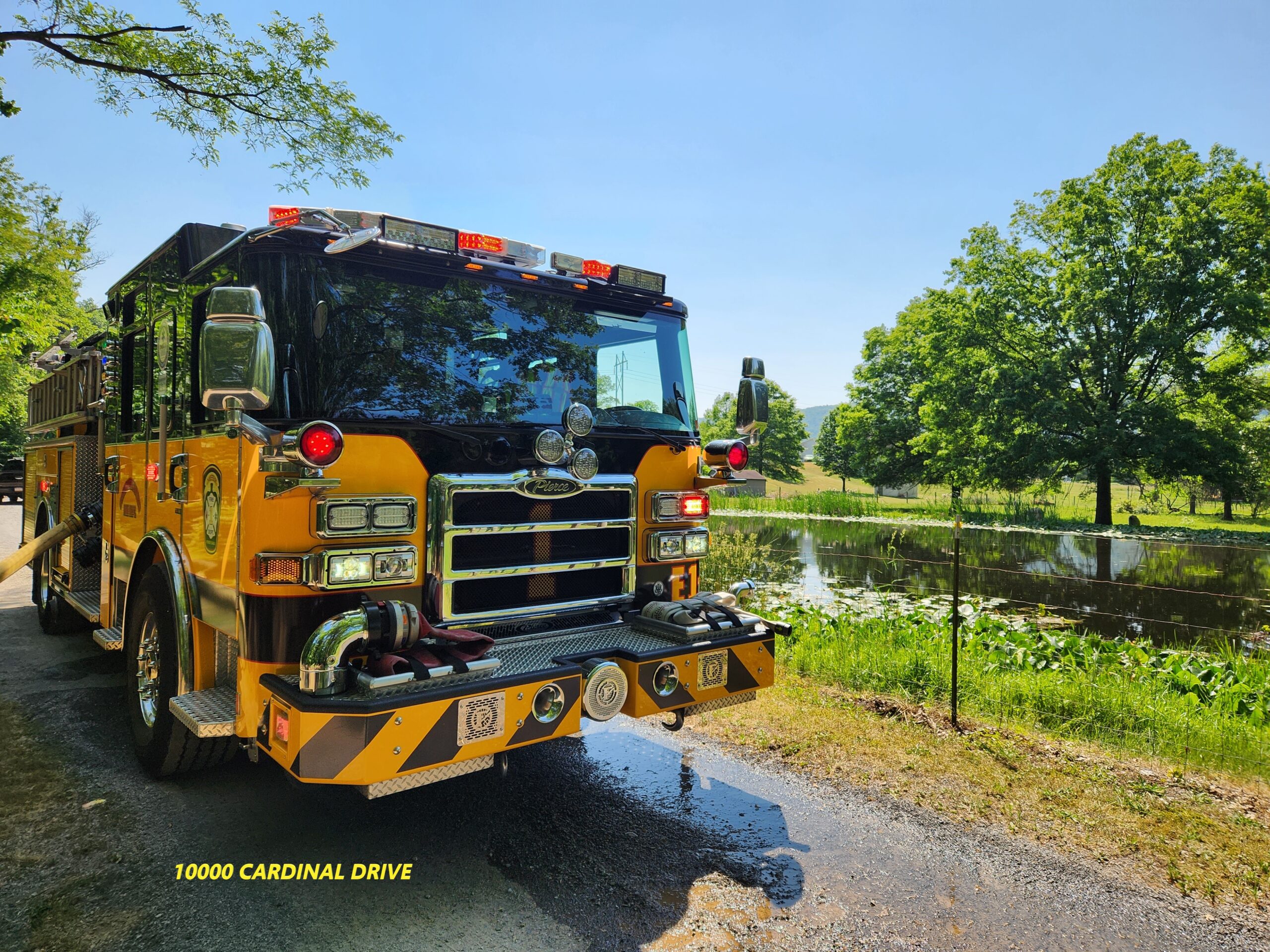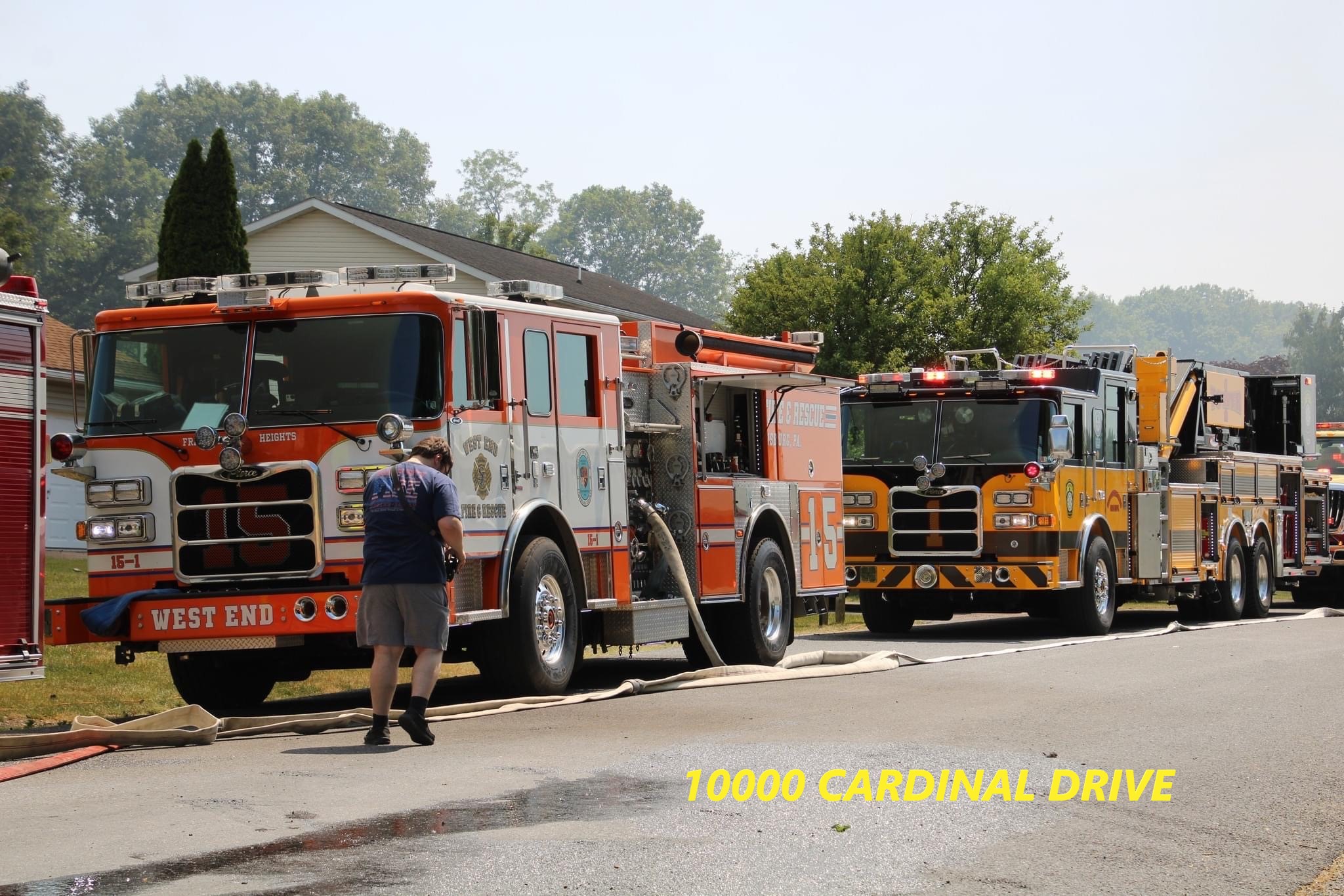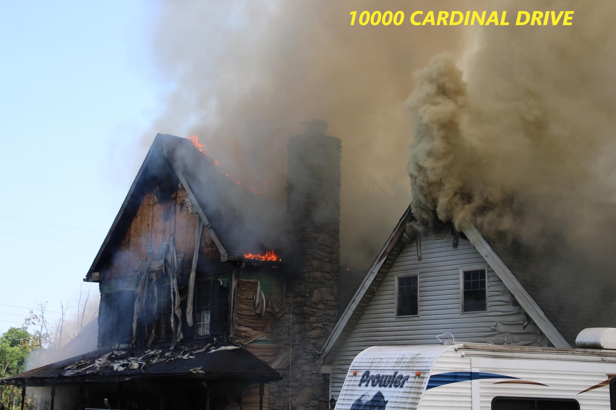 1349 hrs Engine 1-1 and Tower 1 were sent as part of the 2nd alarm assignment to the 10000 block of Cardinal Drive (Company 11). Company 11 were initially sent for a porch fire and had fire throughout the home shortly after arrival. Tower 1 arrived and sent manpower to staging for a short time before being placed in service. Engine 1-1 arrived and established a secondary water supply. The Engine reverse laid 900 feet of supply line to a nearby pond. Engine 1-1 eventually ended up being the primary supply to the scene.