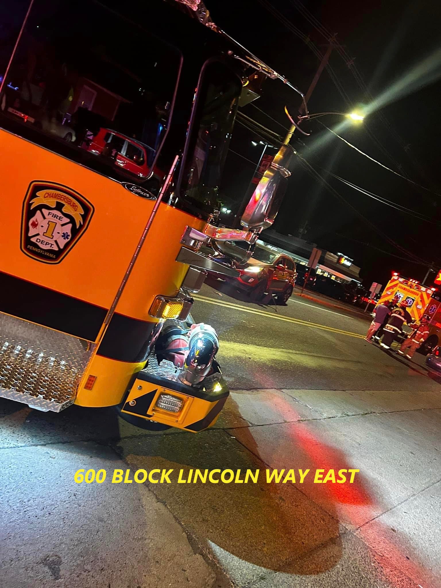 At 2130 hrs CFD units were sent to the 600 block of Lincoln Way East for a vehicle accident with reported entrapment. Engine 1-1 and Ambulance 1-7 arrived with two autos blocking the roadway. Crews confirmed negative entrapment. Crews handled patient care and debris clean up before being placed in service by Chief 1.