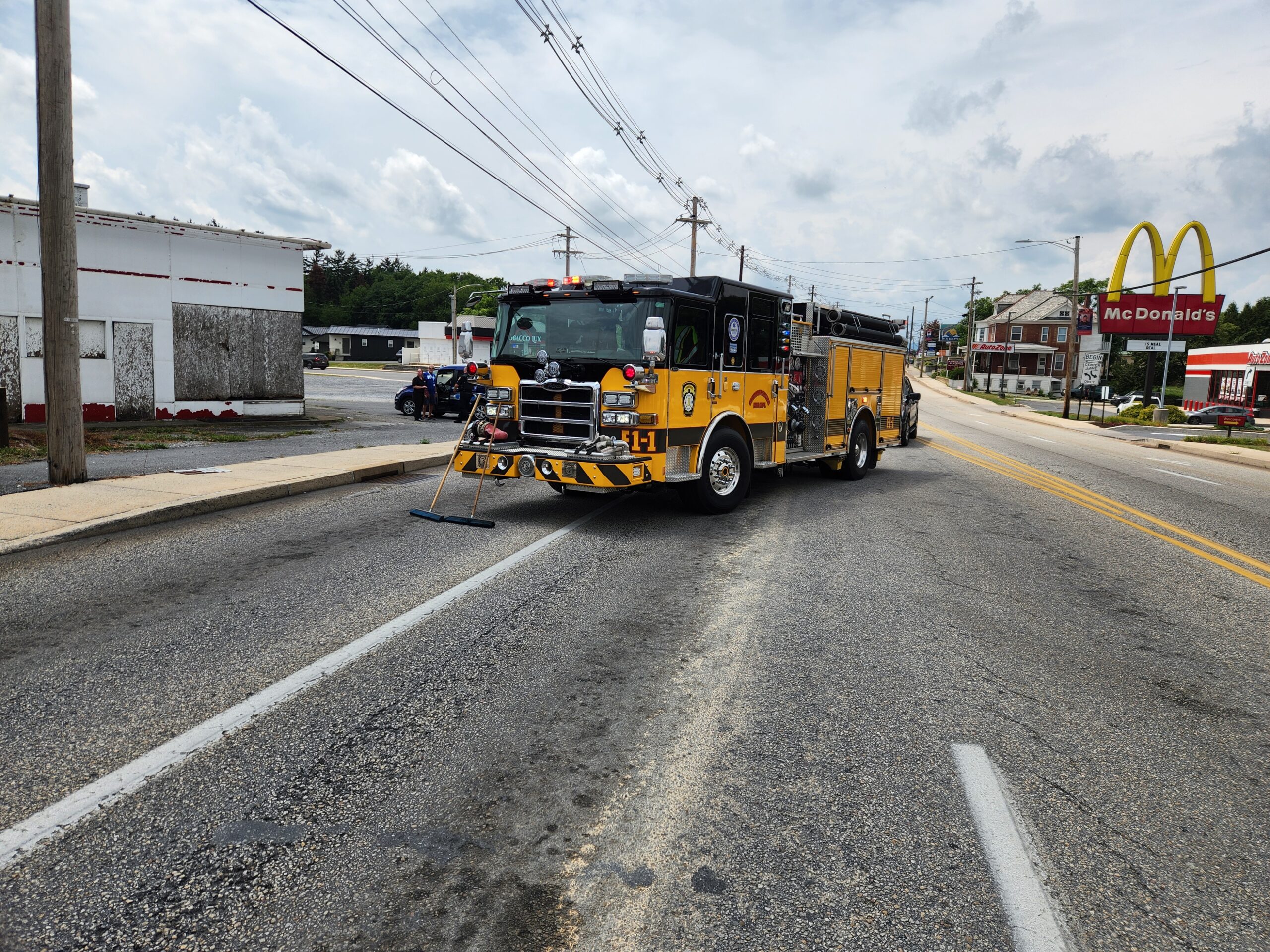 Engine 1-1 and Ambulance 1-7 were sent to the intersection of Lincoln Way East and Stouffer Ave for a vehicle accident. Engine 1-1 arrived, finding three vehicles involved and part of the roadway blocked. Crews assessed all occupants and Ambulance 1-7 transported one to the hospital. Engine 1-1 crew cleared debris and rerouted traffic off Lincoln Way for a short time. Crews operated for a little over 30 minutes before clearing and reopening Lincoln Way.