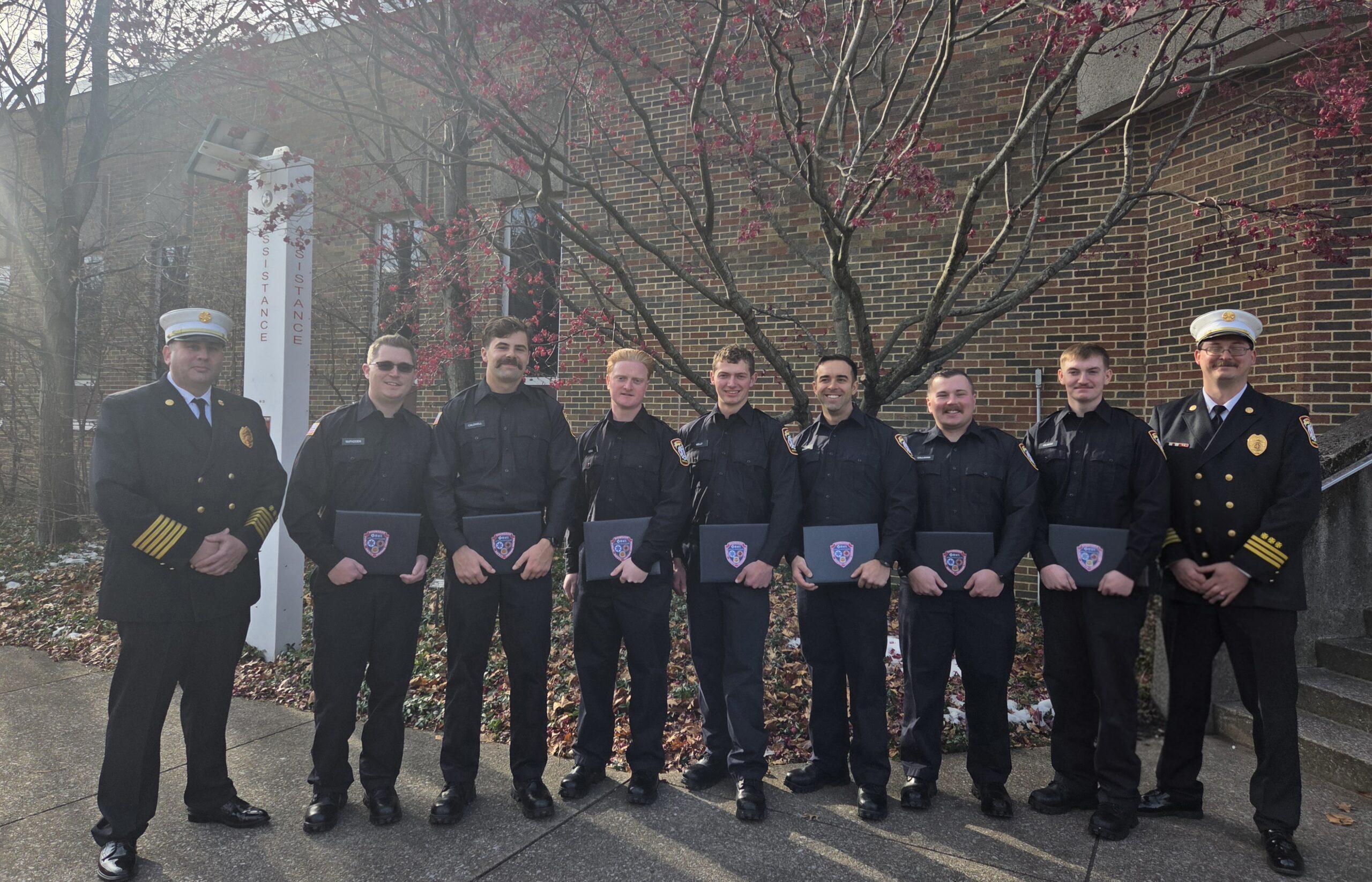 A historical day for Chambersburg Fire Department celebrated the graduation of 7 new firefighters to our ranks. These 7 new members spent several weeks going over all aspects of the job, including, firefighting, vehicle extrication, hazardous materials response, emergency vehicle operations and rope rescue operations. Their training isn't quite over yet, as they will now start their departmental in house training for the next week, going over our operations and equipment. We are extremely grateful to our. Borough Council and Borough staff that assisted with giving us the ability to bring these 7 new members on board.