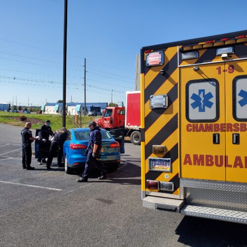 Engine 1-4 and Ambulance 1-9 handled a late morning accident in the parking lot of 1617 Orchard Driv