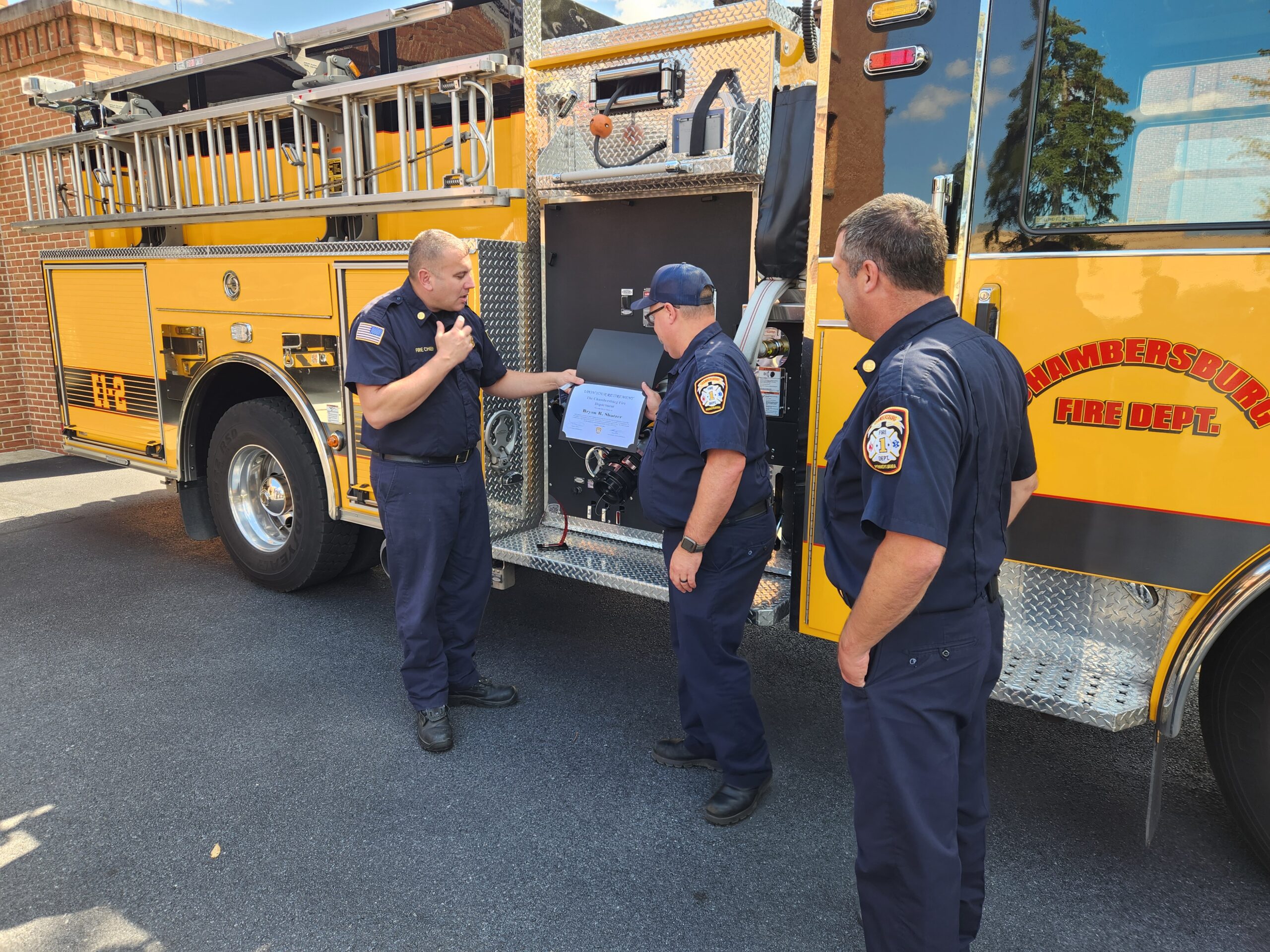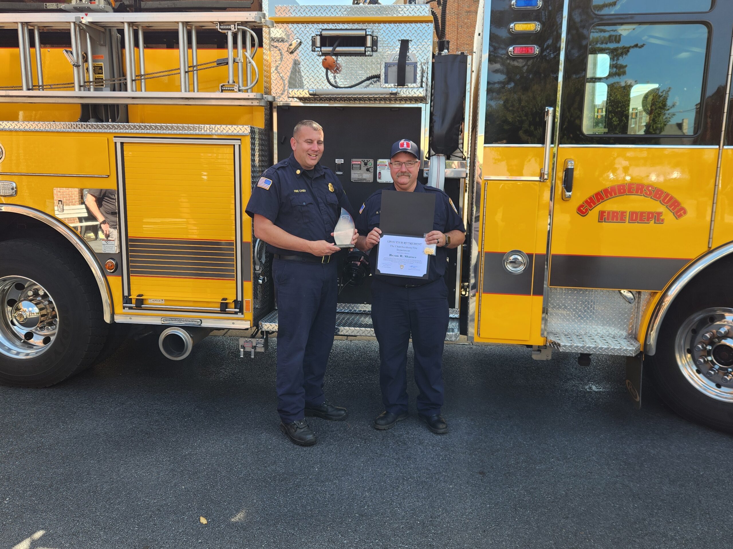 THe Chambersburg Fire Department would like to wish Firefighter Bryan Shatzer a safe and healthy retirement. FF Shatzer officially retired Sept 17th after serving the Borough of Chambersburg for 29 1/2 years. We thank Bryan for his many years of dedicated services operating the McKinley Street engine and all the work he did overseeing our SCBA maintenance and purchasing, ensuring the department had the safest of equipment to use. Congratulations Bryan on a well deserved career and enjoy retirement.