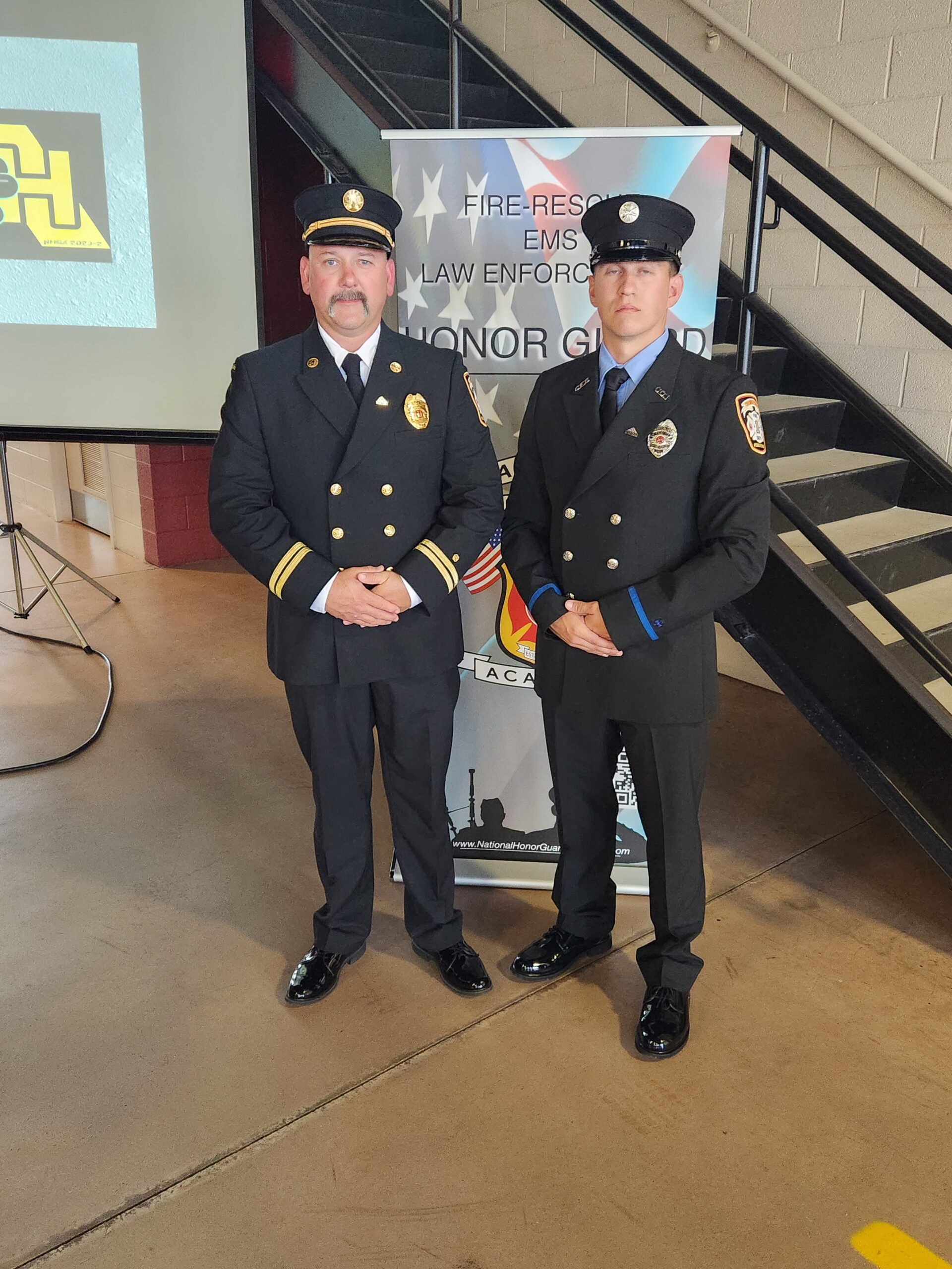 Capt. Randall Pryor and Firefighter/EMT Kevin Ecke spent the past week participating in the National Honor Guard Academy, located in New Kingstown, Pa, finishing out the week with a graduation ceremony. This group of fire, EMS, Law Enforcement and Dispatchers worked as a group to learn techniques and traditions of an Honor Guard and be able to provide much needed sympathy and respect during funeral or memorial service. Capt Pryor and FF Ecke bring our ranks of 6 members of the department to have graduated from this academy.