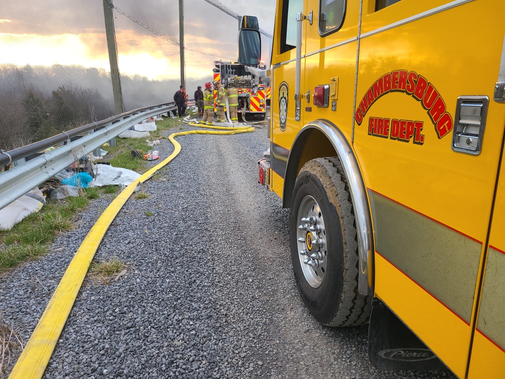 CFD Engine 1-1 and Engine 1-4 responded shortly after 0700 hrs to assist Co. 9 with a DumpFire on Letzburg Road. Command 9 special requested CFD for our larger foam capabilities to assist with bringing the fire under control. Engine 1-1 with 2 and Engine 1-4 with 4 responded and flowed into Truck 2 (Waynesboro). Crews operated for 3 hours before being placed in service by Command 9 (Chief Carbaugh).