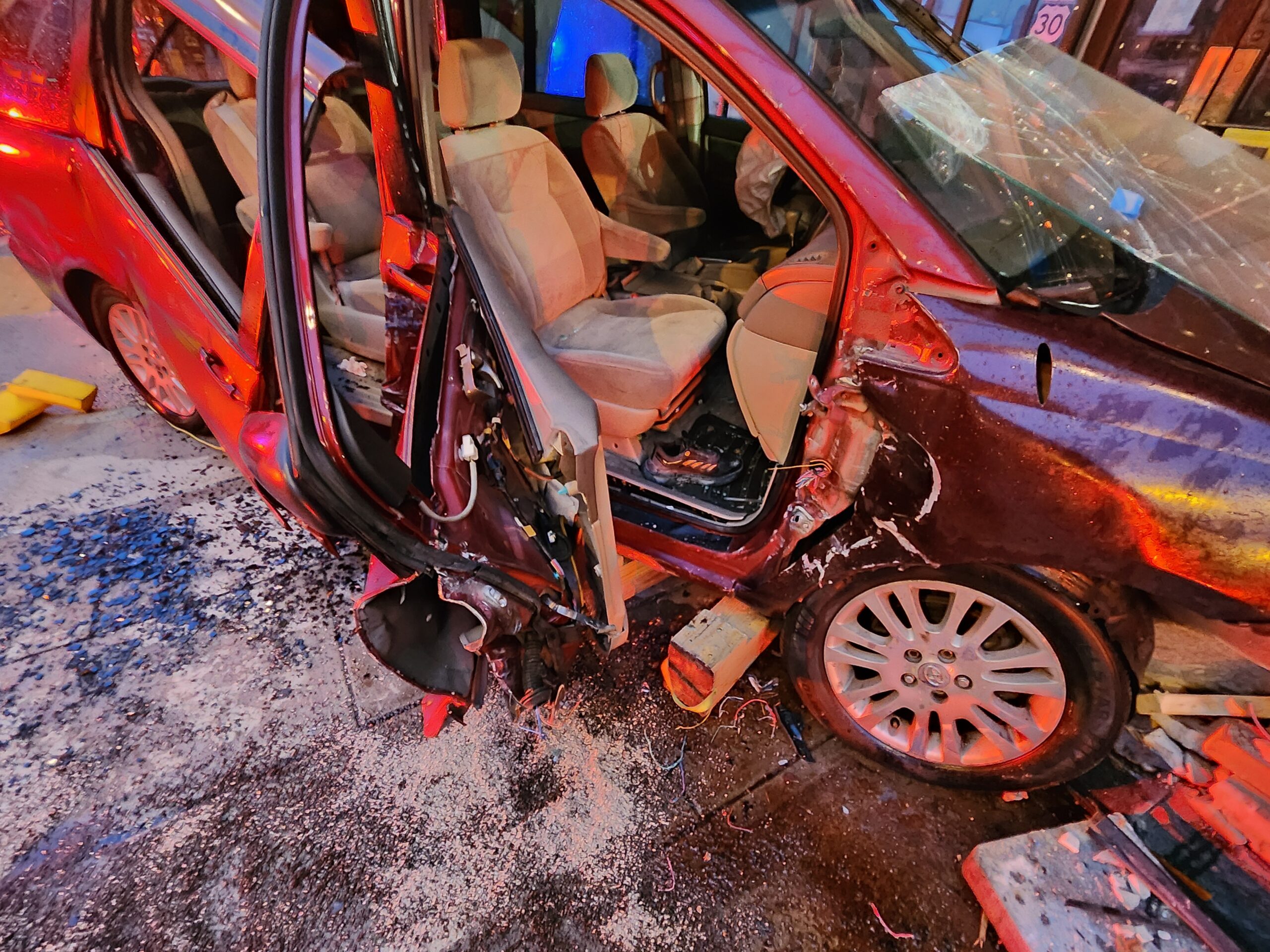Crews extricate one from vehicle into building
