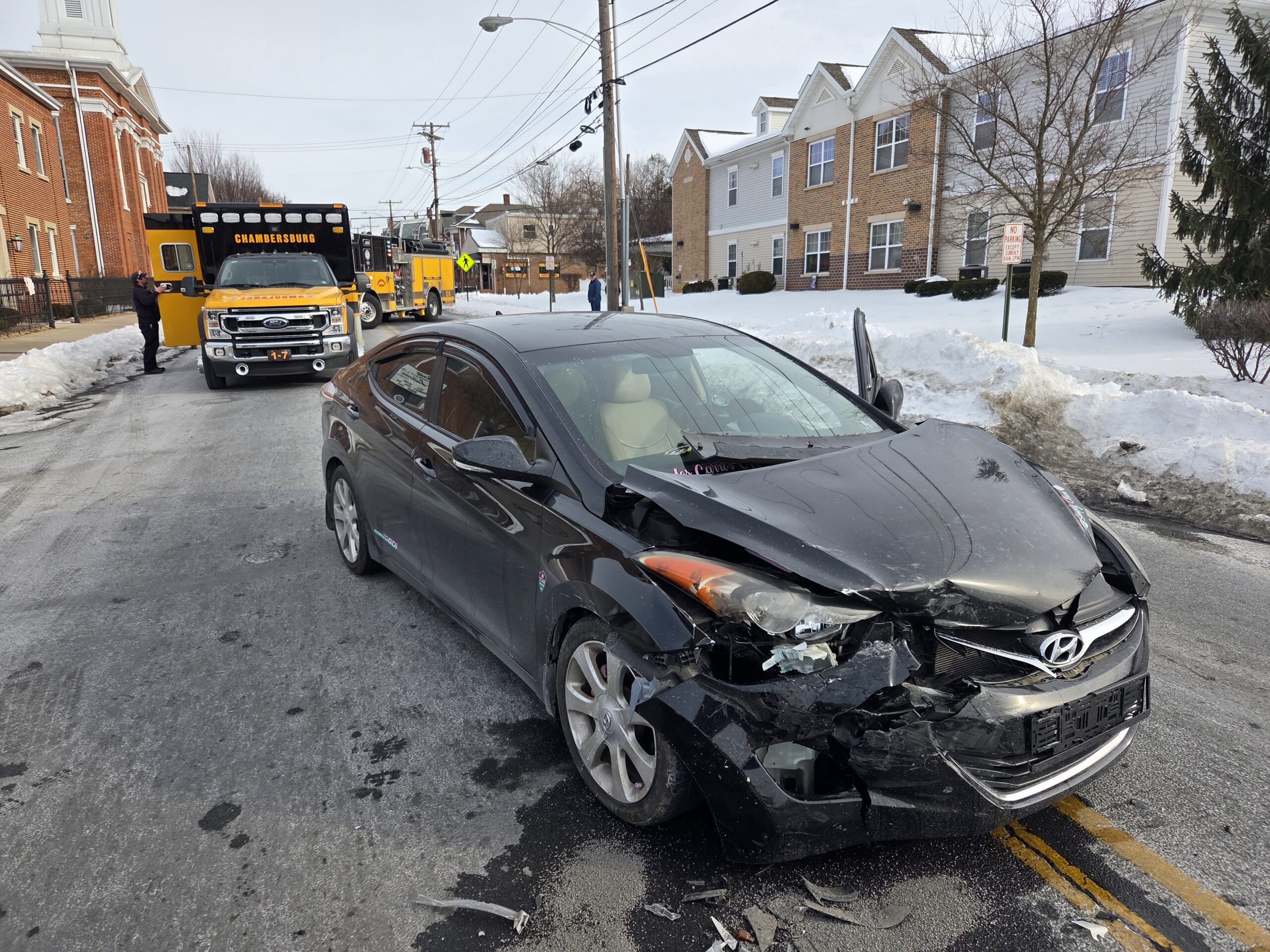 Engine 1-2 and Ambulance 1-7 were sent to the unit block of West Washington Street for a vehicle accident. Asst. Chief 1 arrived, finding two autos blocking the roadway. Ambulance 1-7 crews evaluated all the occupants, while Engine 1-2 secured fluids leaking from the vehicles. Ambulance 1-7 transported one to the hospital. Engine 1-2 remained on scene, blocking the roadway and clearing debris. Towing arrived and cleared the vehicles, with CFD units clearing as well.