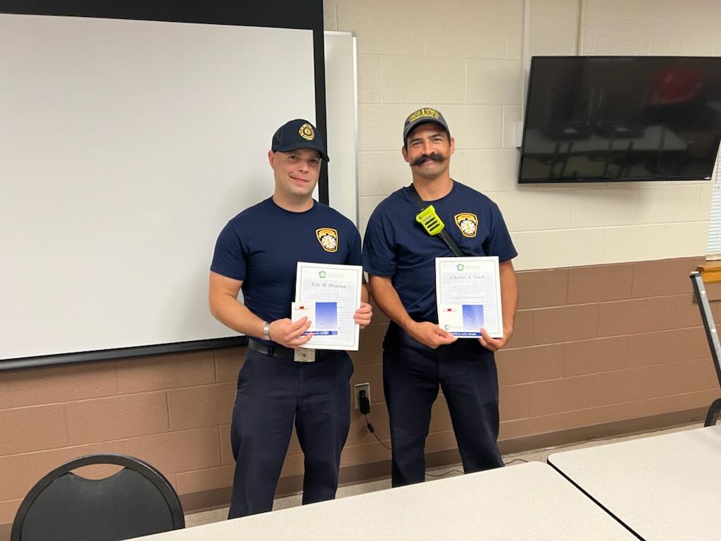 FF/EMT Eric Houston and FF/EMT Charles Tatch received a Clinical Save Award today on behalf of the Emergency Health Services Federation and PA Dept of Health. This award is presented to EMS crews that resuscitate an individual prior to arrival at a hospital. This clinical save award was for the life saving measures these two provided for an incident in June of 2022, where the crew was alerted for a fall victim, but arrived to find the individual in cardiac arrest. Crews performed CPR and were able to resuscitate the patient prior to arrival of ALS or Fire Dept and transported to the hospital where they were able to make a full recovery.
