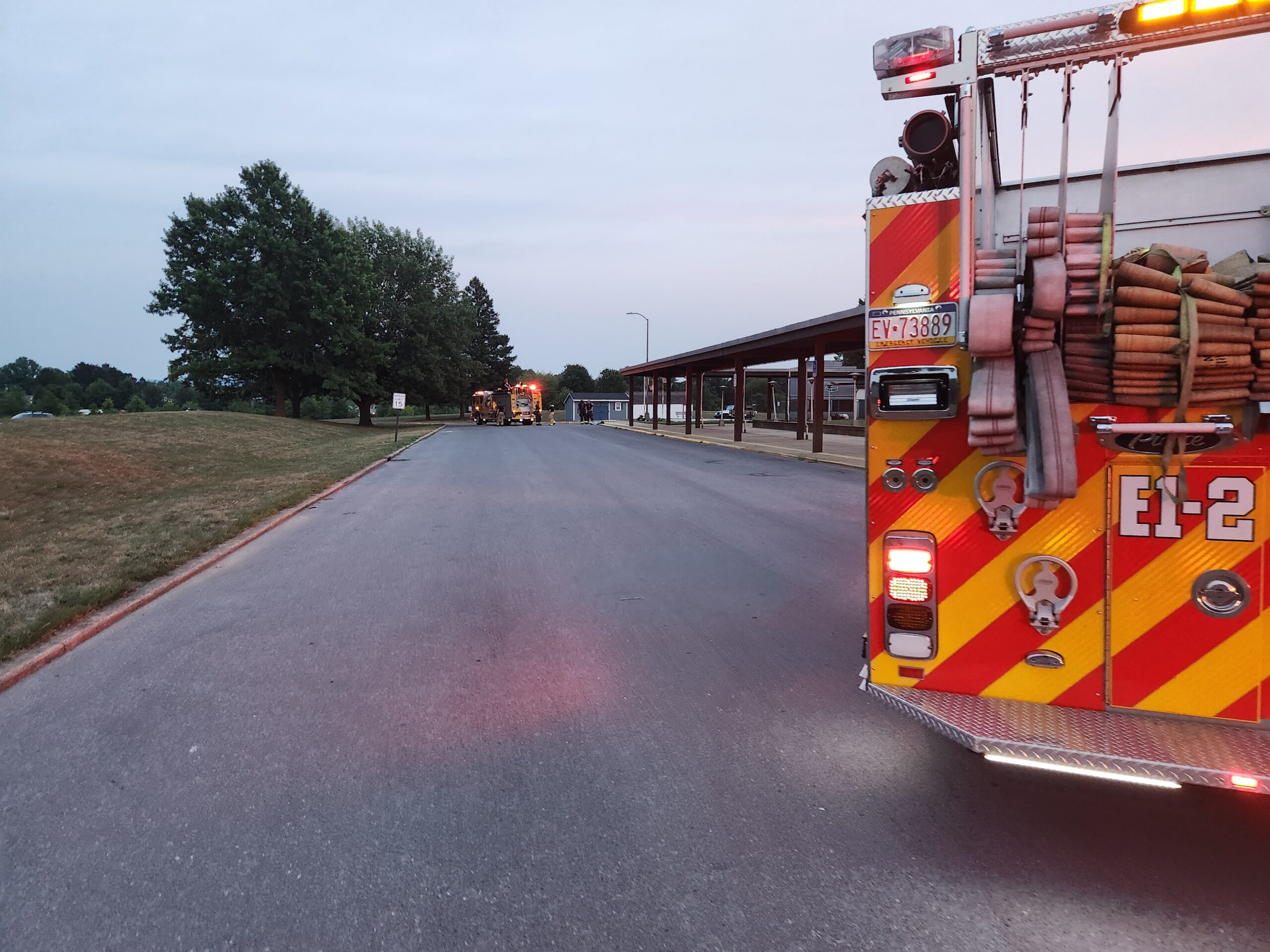 CFD units and mutual aid were out the door again, this time to CAMS South for a report of a building fire. While crews were responding, it was reported a generator against the building was on fire. Engine 1-4 arrived and found no actual fire and continued to investigate. Capt. 1-3 (Martin) established Command and started to return units. Company 1 remained on scene for further investigation on what was found to be a component of the generator that had overheated. CASD maintenance arrived and took over the scene and Company 1 units became available.