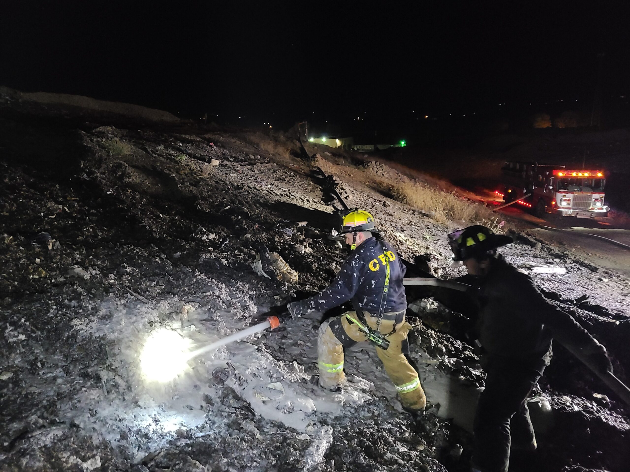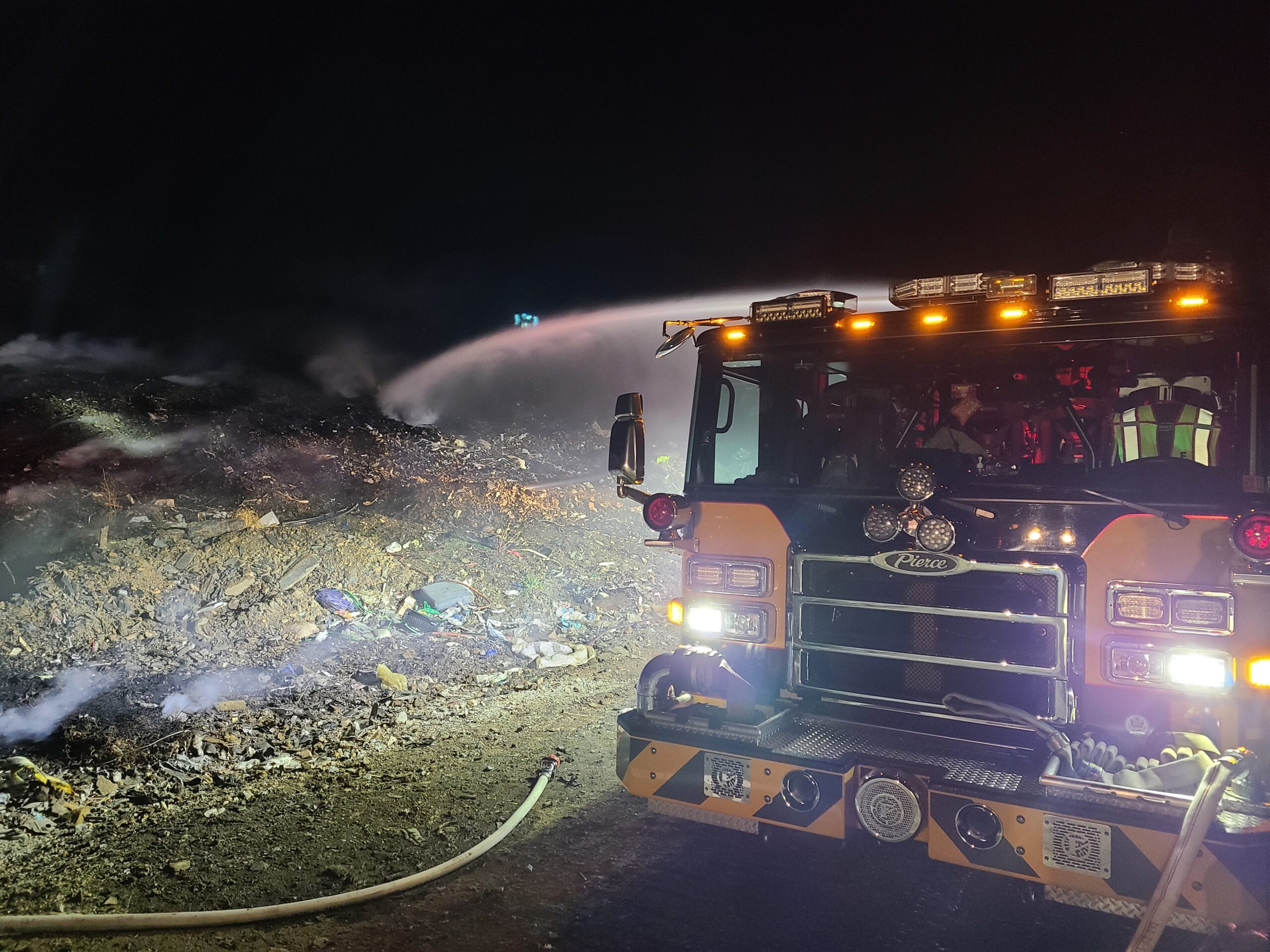 Shortly after 1030 PM units from Co. 9 were sent to Letzburg Rd for a Landfill on fire. Co. 9 units arrived, finding about a 100 foot by 200 foot area involved. Engine 1-1 was special requested to assist due to its foam capabilities. Engine 1-1 responded with 5 and on arrival was placed in position to attack the fire. Crews utilized the deck gun and a handline to assist with extinguishing the fire and laying a blanket of foam on the area. CFD crews operated for just under 4 hours until released by Command 9.