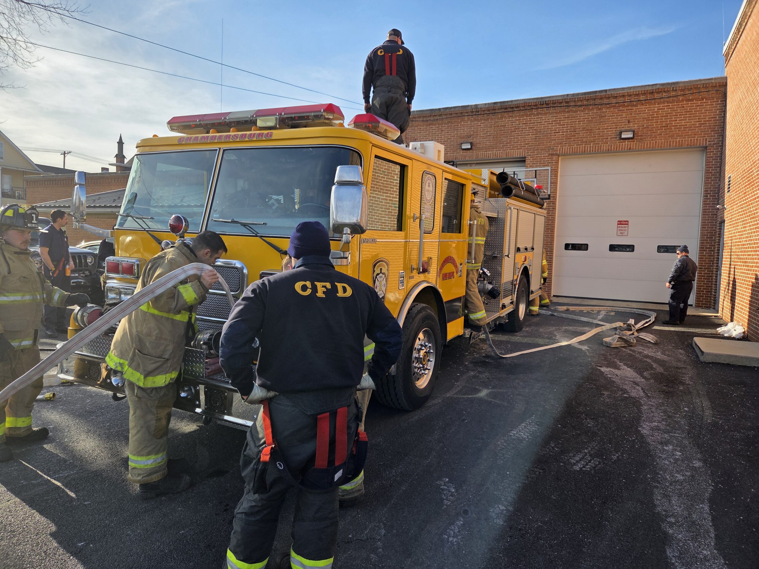The new members spent their morning doing an overview of all things ESO. ESO Solutions, which is our all inclusive software for Fire/EMS reports, scheduling, and inspections is a very important part of our day-to-day operations. This time was spent showing them all parts of the software and how some of it works. The remainder of the day was spent going over the Engine Company of Chambersburg Fire Department. Crews covered locations of equipment and operations of that equipment. They ended their day with stretching lines off the engines and familiarizing themselves with the different lines we utilize. Material today was covered by Asst. Chief Myers, Secretary Marshall Warden, Engine Operators Jamie Birgfeld, Matt Birgfeld, and Sam Nehf, and Firefighter Trever O'Donnell.