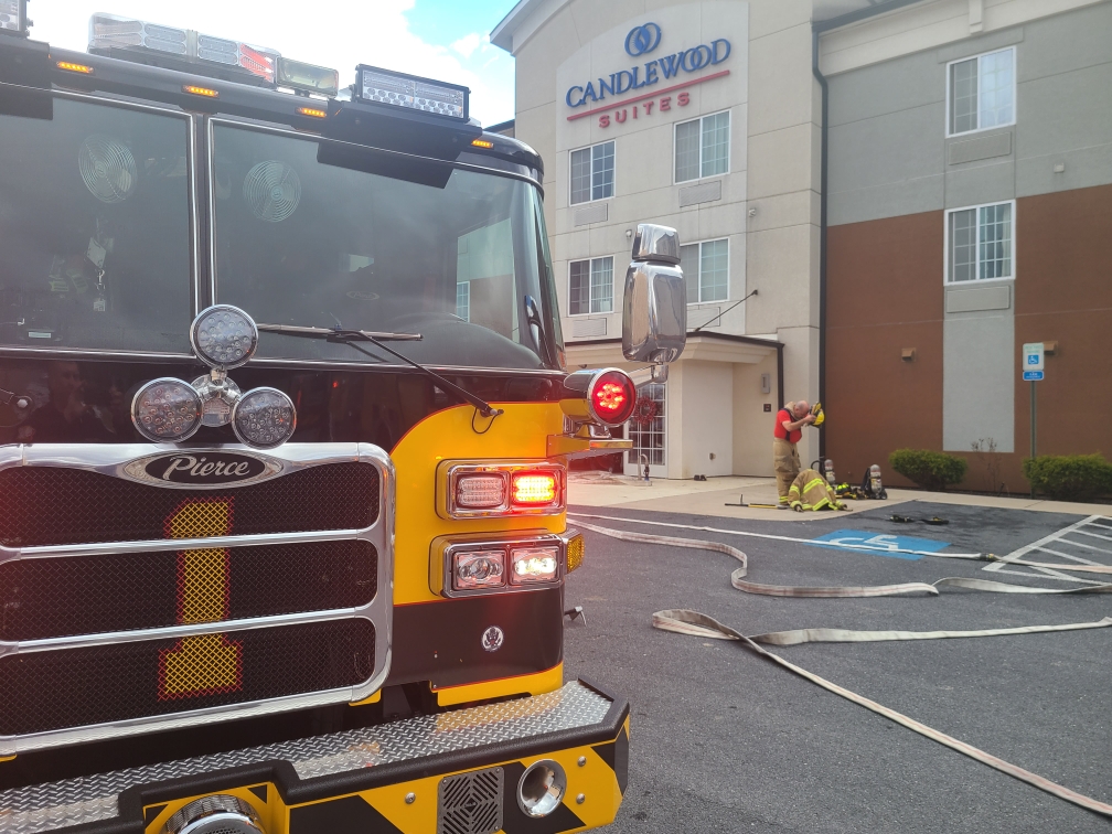 HQ station units were sent to the 200 block of Walker Road for a fire alarm in a hotel. While enroute, Franklin County 911 advised a call from the hotel now reporting smoke in the laundry room, which upgraded the assignment to Engine 1-2 and mutual aid units. Units arrived with normal conditions from the outside and Captain 1-4 found smoke in the laundry room and gym. CFD units investigated the source of smoke while Squad 41 completed a search of the hotel to ensure occupants were out. The source of the smoke was found to be a burned up belt on a washing machine. Command 1 (Chief Ulrich) held the assignment to Company 1 for ventilation and returned all other units.