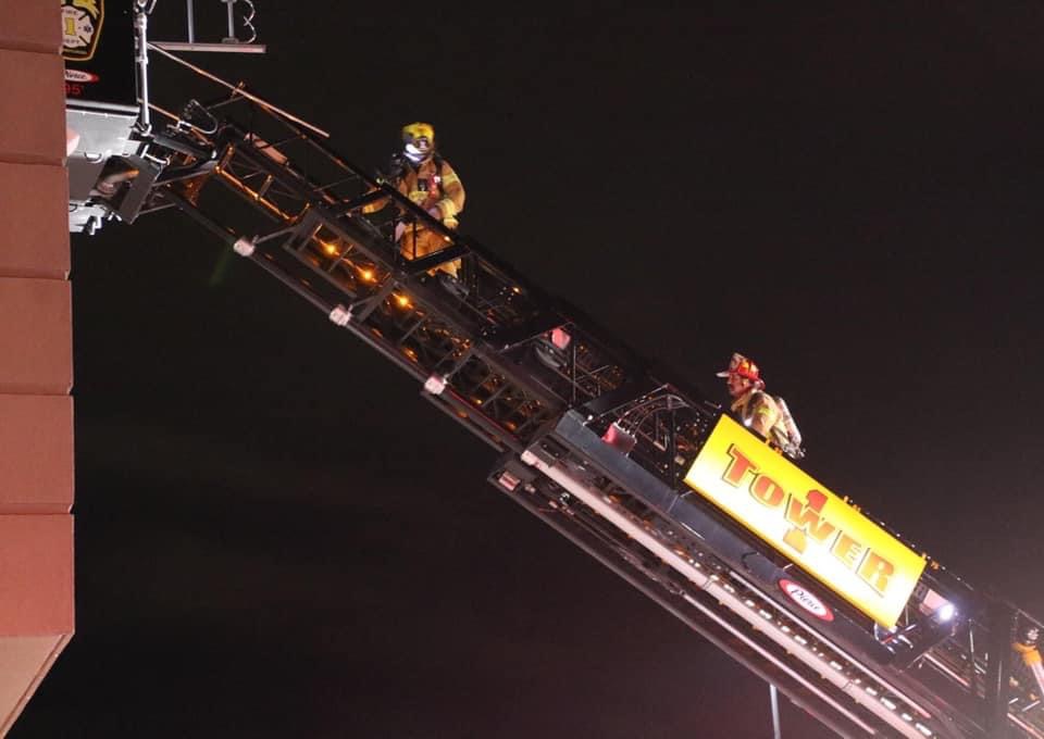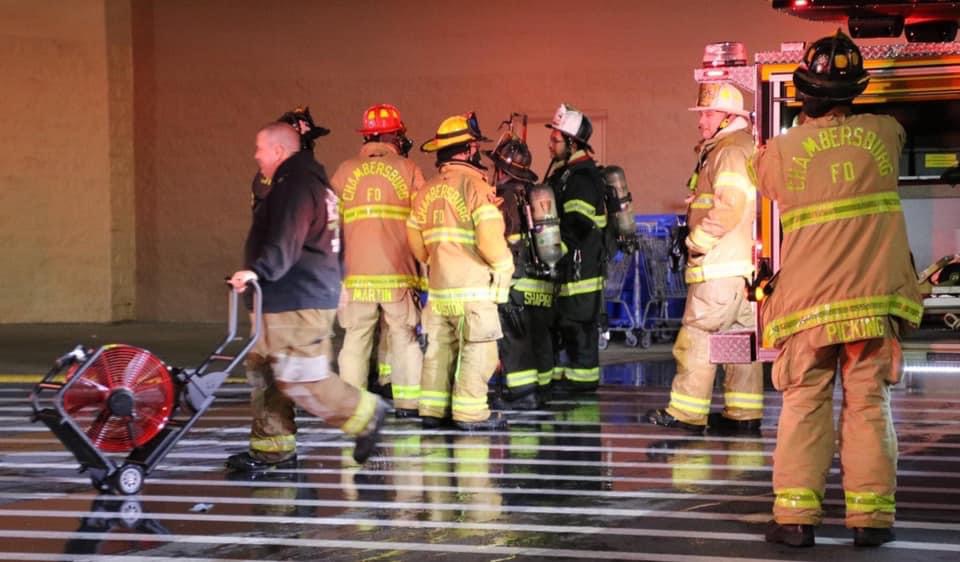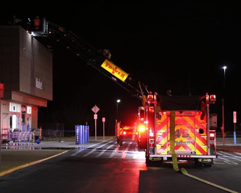 Tower 1 and Chief 1 responded as part of the 1st alarm assignment to 1730 Lincoln Way East, Wal-Mart, for smoke in the building. Initial crews found smoke increasing in the building and located a small fire in a storage area with a sprinkler activation. Crews remained on scene for about an hour for overhaul and clean up until released by Command 7.