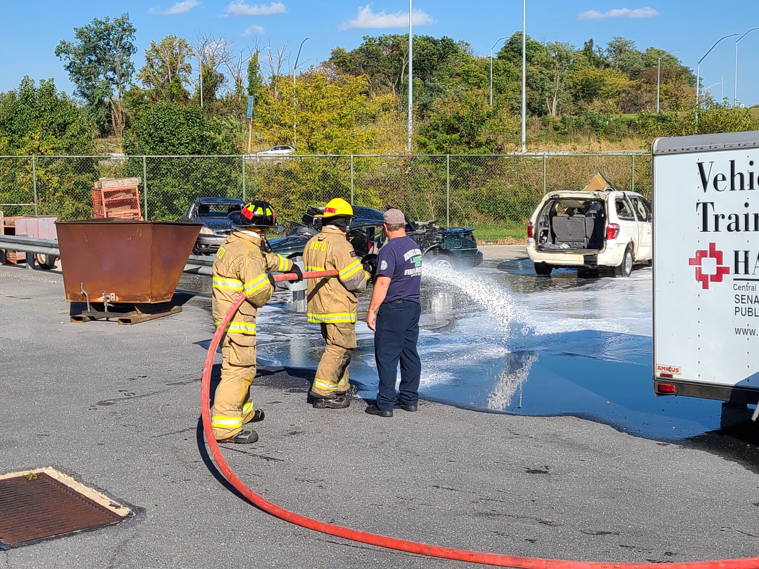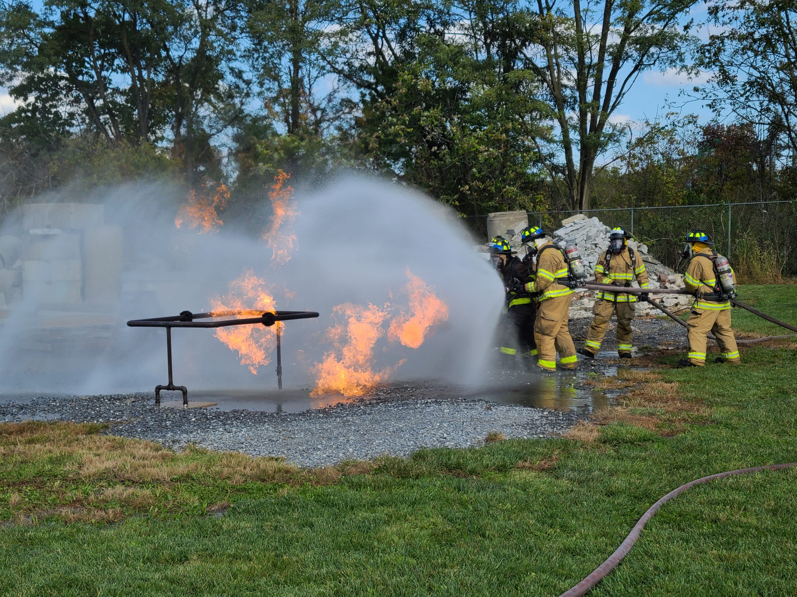 While there Asst. Chief Myers checked in on the 6 new Firefighters as they started into some of their practical work for the Fire Academy. The cadets were working on multiple different non-structure related fires (Dumpsters, Autos, Gas Meters) while also working on foam operations. The cadets are excited to be working on their practical evolutions and anticipating them to be intensifying as the academy continues.