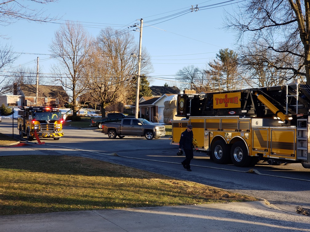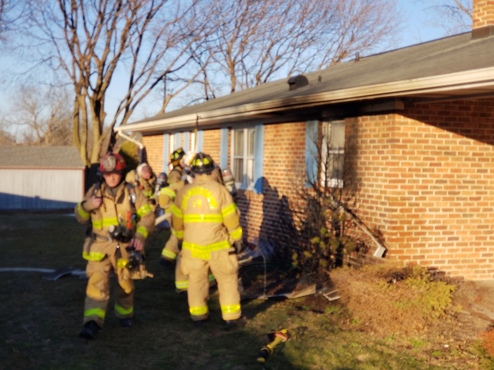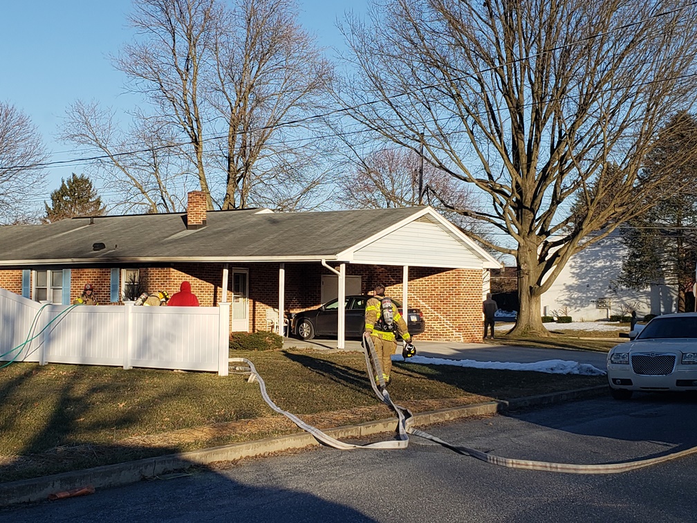 At 5:00 p.m., the County 911 Center received multiple calls for a house fire at 101 Eisenhower Drive. Callers reported fire to the rear of the house that had extended inside. Company 1 arrived three minutes after dispatch to find the fire was being extinguished by a garden hose. Crews opened up the soffit/eave area and found minor extension. Command held Co. 1 and placed all the remaining units in service. After a quick wet down of the affected area, crews wrapped up and cleared the scene in under thirty minutes.