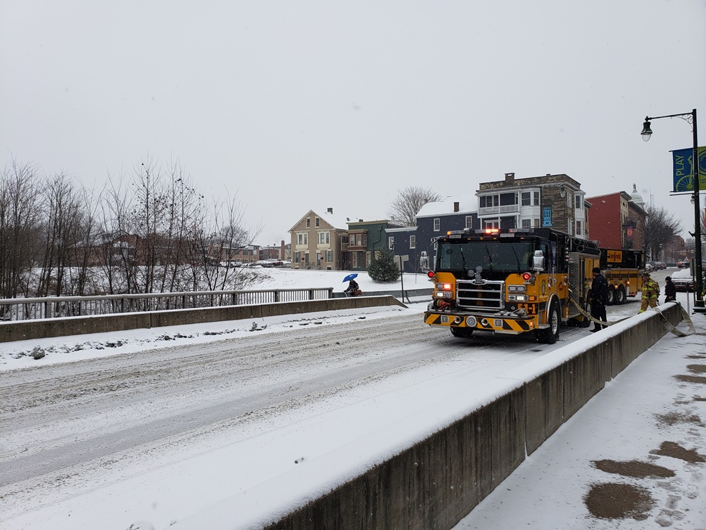 | As an unexpected snowstorm blanketed Chambersburg, crews were out the door shortly after 11:00 a.m. for an inside investigation of smoke at 72 Lincoln Way West. Engine 1-1 (Cpt. Martin) arrived to find normal conditions on all floors. After an extensive investigation, it was found that the odor that had disappeared before the fire department's arrival was coming from renovations/wood sanding in the foyer area. All units were cleared under good intent. |