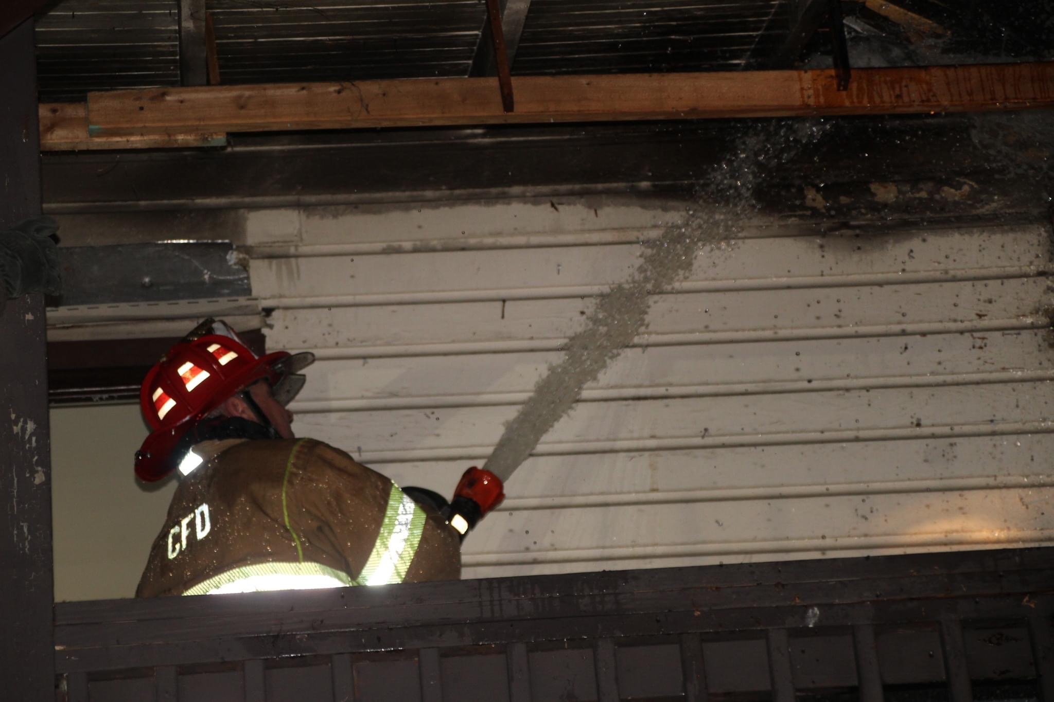 Company 1 units and mutual aid were sent to the 200 block of Miller St for a reported house fire. Squad 41 and Engine 1-1 arrived to find a smoke condition from the rear of the building. A small smoldering fire was located on the 2nd floor deck to the rear. Crews wet the area down and pulled some of the deck up before clearing. About an hour later, crews were sent back out again for a reported house fire. Units arrived and located a large bird's nest in the ceiling of the deck that had started to smoke from the first fire and after smoldering for some time, began to ignite. Crews opened up the entire ceiling and deck area to ensure no other areas were hot.