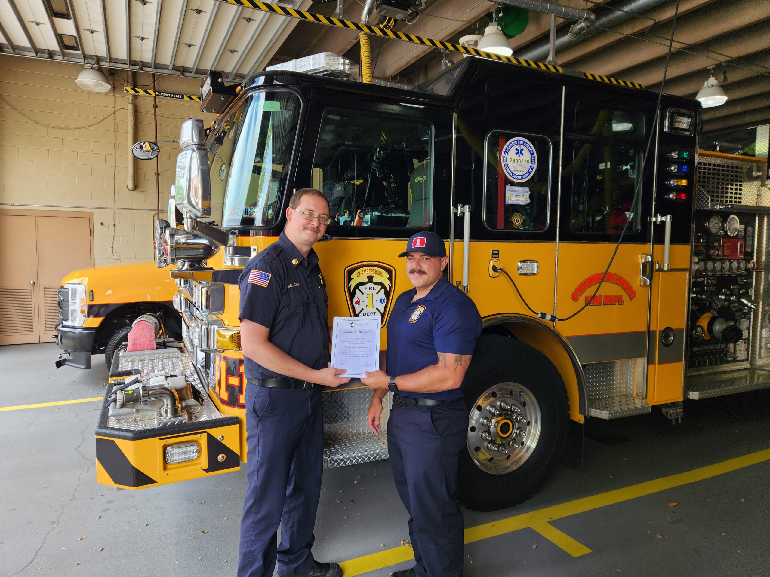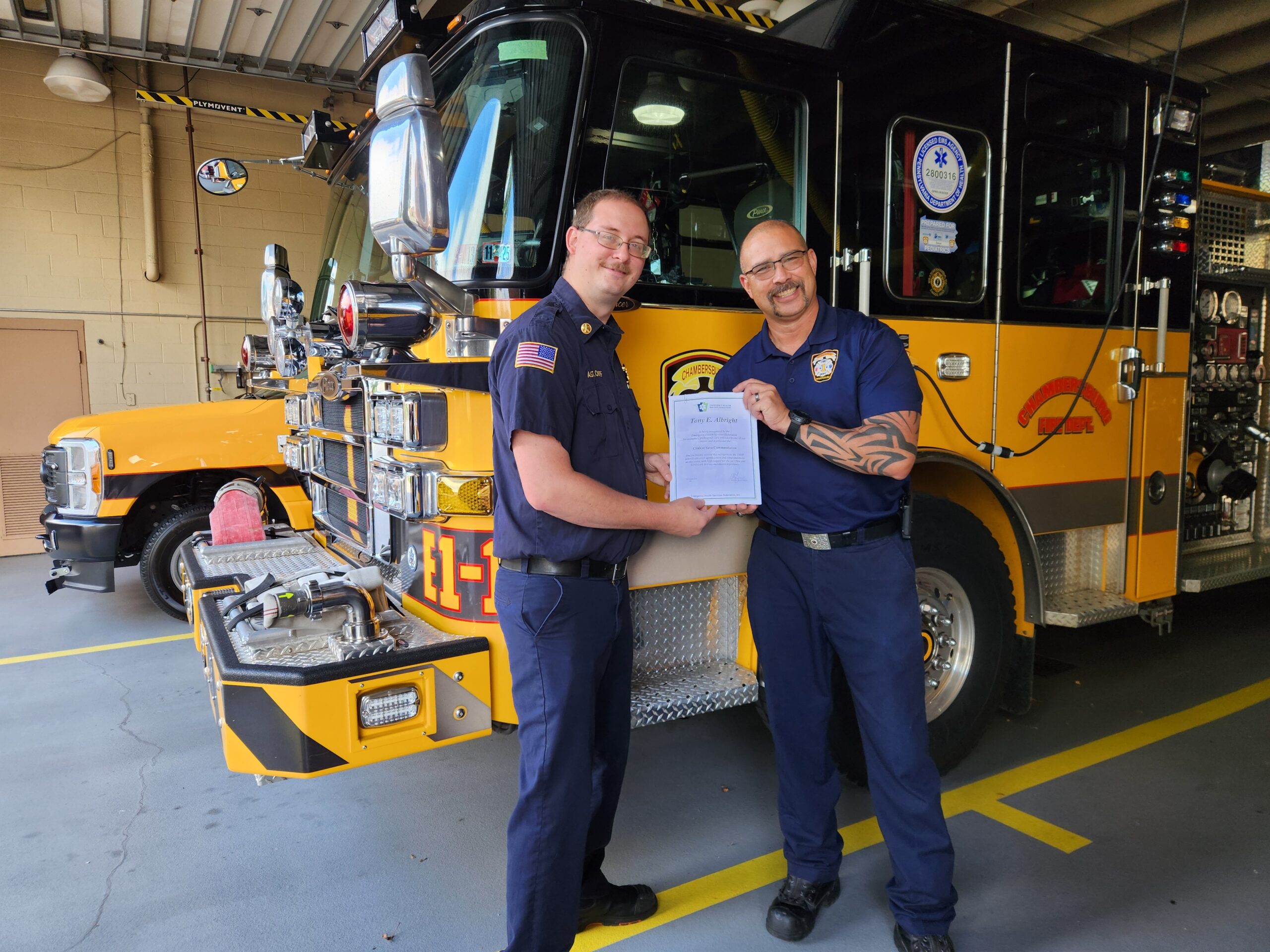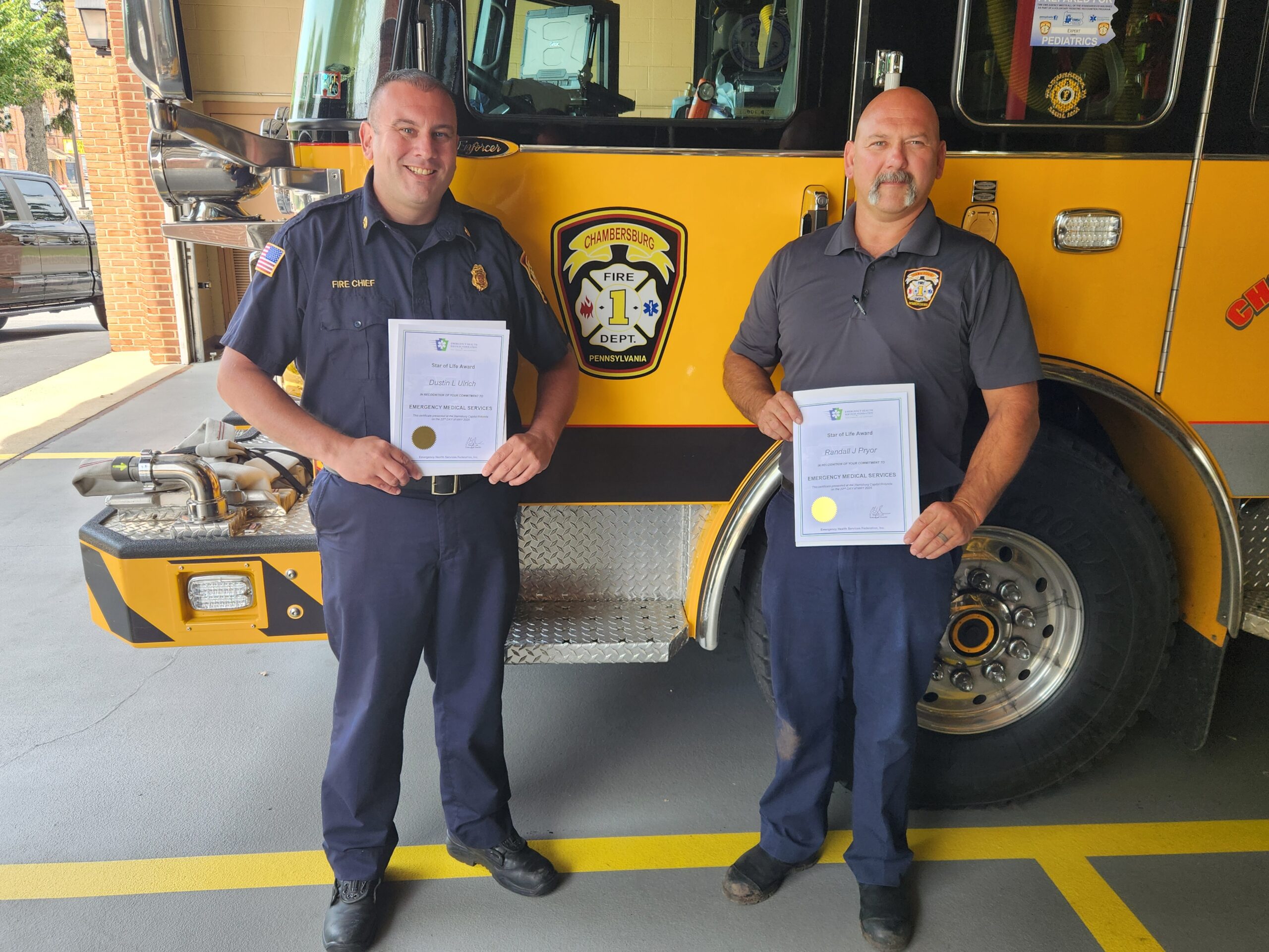 Fire Chief Dustin Ulrich and Captain Randall Pryor were presented with their 25-year EMS award. This award is presented to individuals who have had their EMT certification for 25 years.