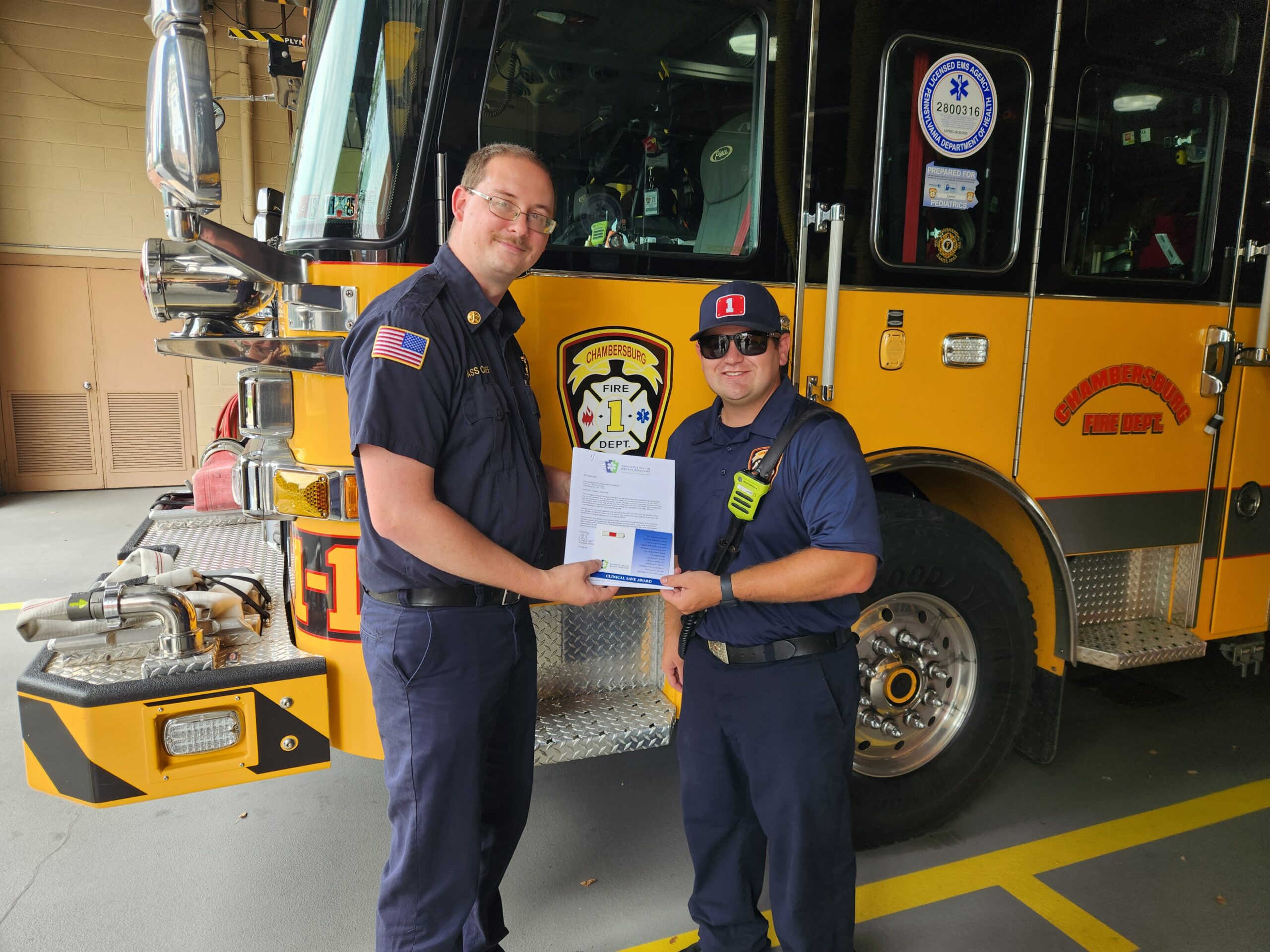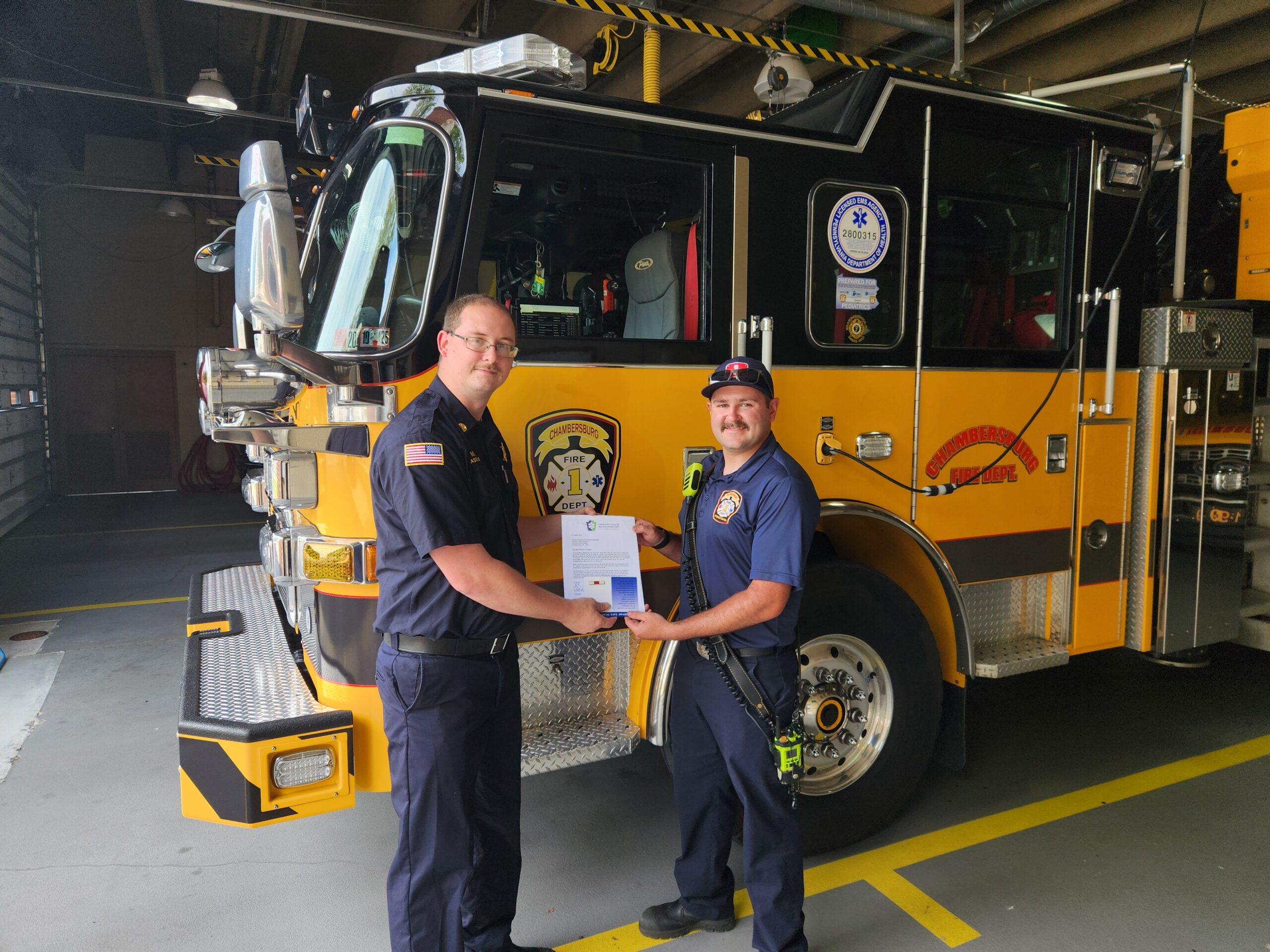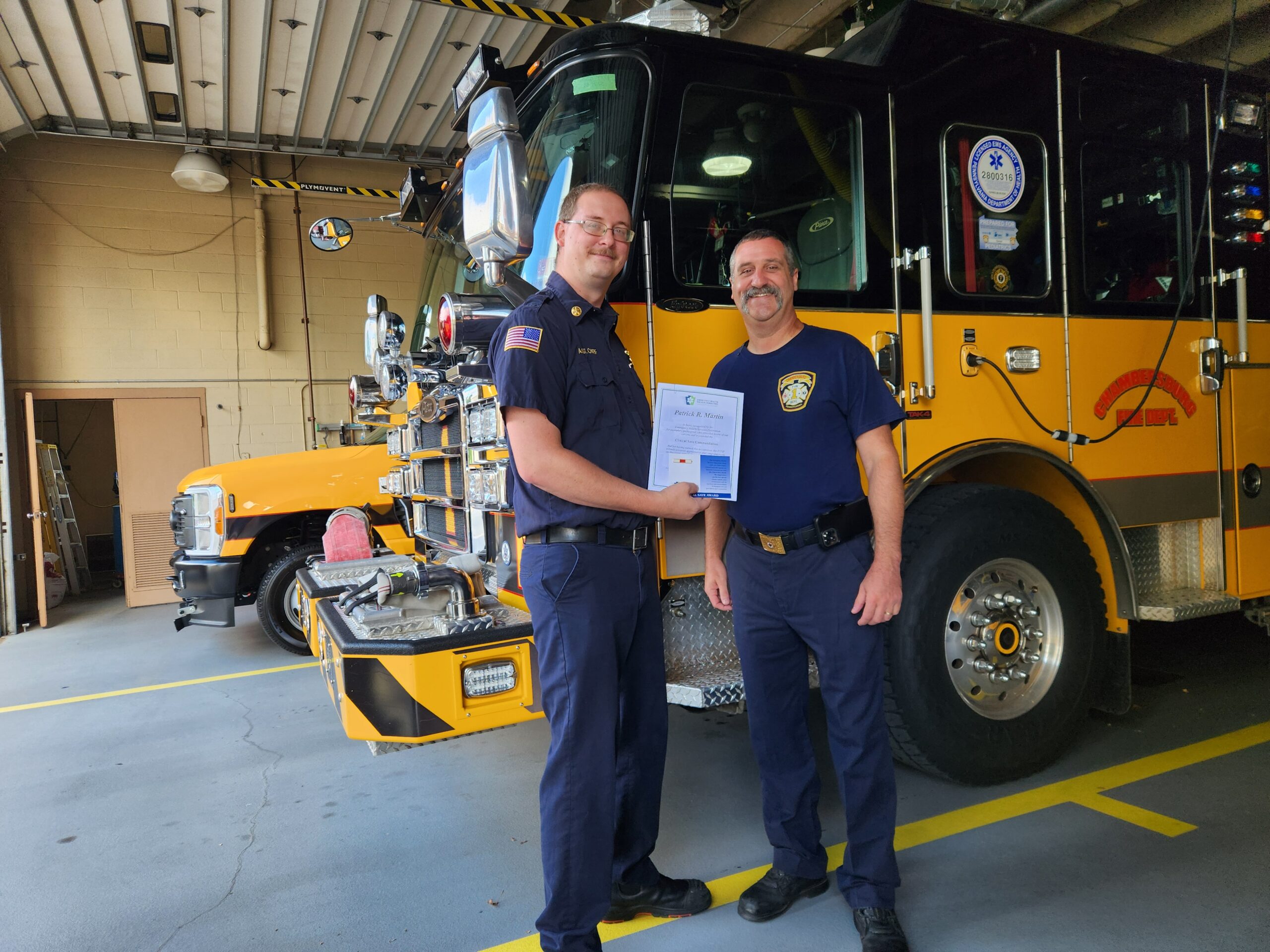 Fire Chief Dustin Ulrich and Captain Randall Pryor were presented with their 25-year EMS award. This award is presented to individuals who have had their EMT certification for 25 years.