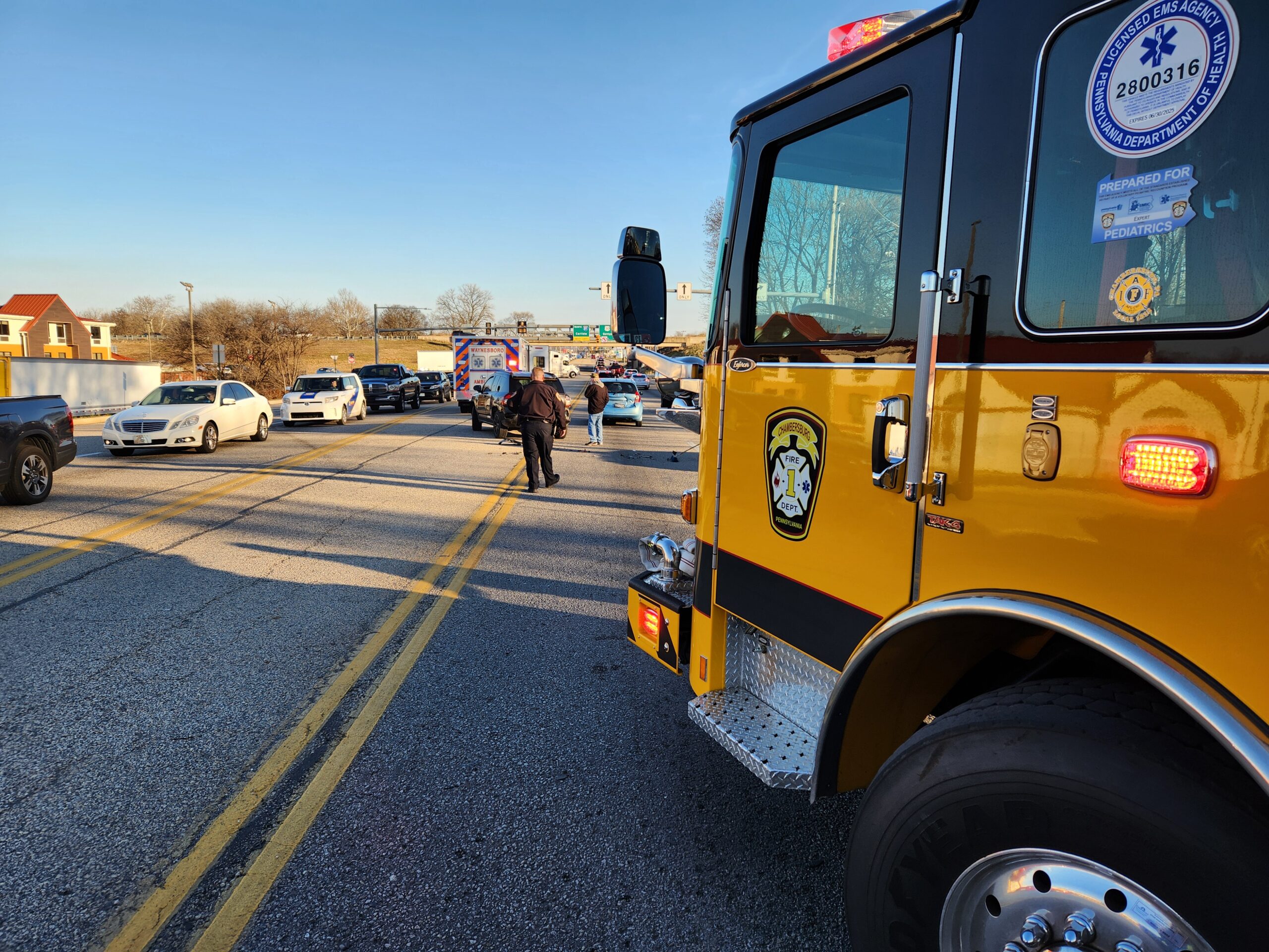 Just after units cleared from Norland Ave, Communications sent Engine 1-1 and Ambulance 1-9 to the 1100 block of Lincoln Way East for a vehicle accident. En route, units were advised of multiple vehicles involved. Ambulance 2-8 (Waynesboro EMS) was clearing from Chambersburg Hospital and arrived on scene with 5 vehicles involved. Company 1 units arrived and began assessing all vehicles for injuries. Ambulance 1-9 handled patient care and transport for one of the occupants. Ambulance 2-8 handled a patient refusal. Crews remained on scene redirecting traffic until the roadway was opened back up.