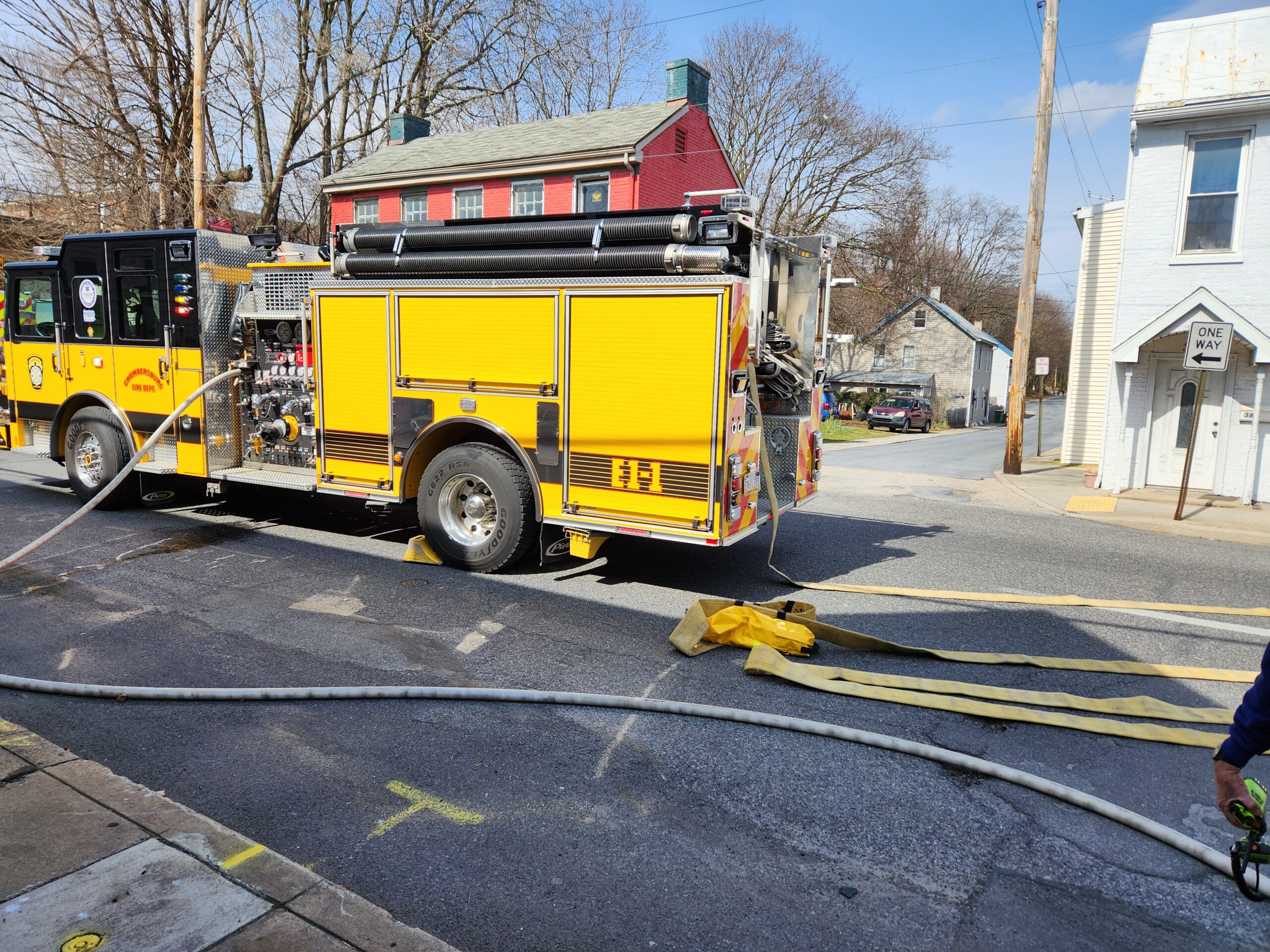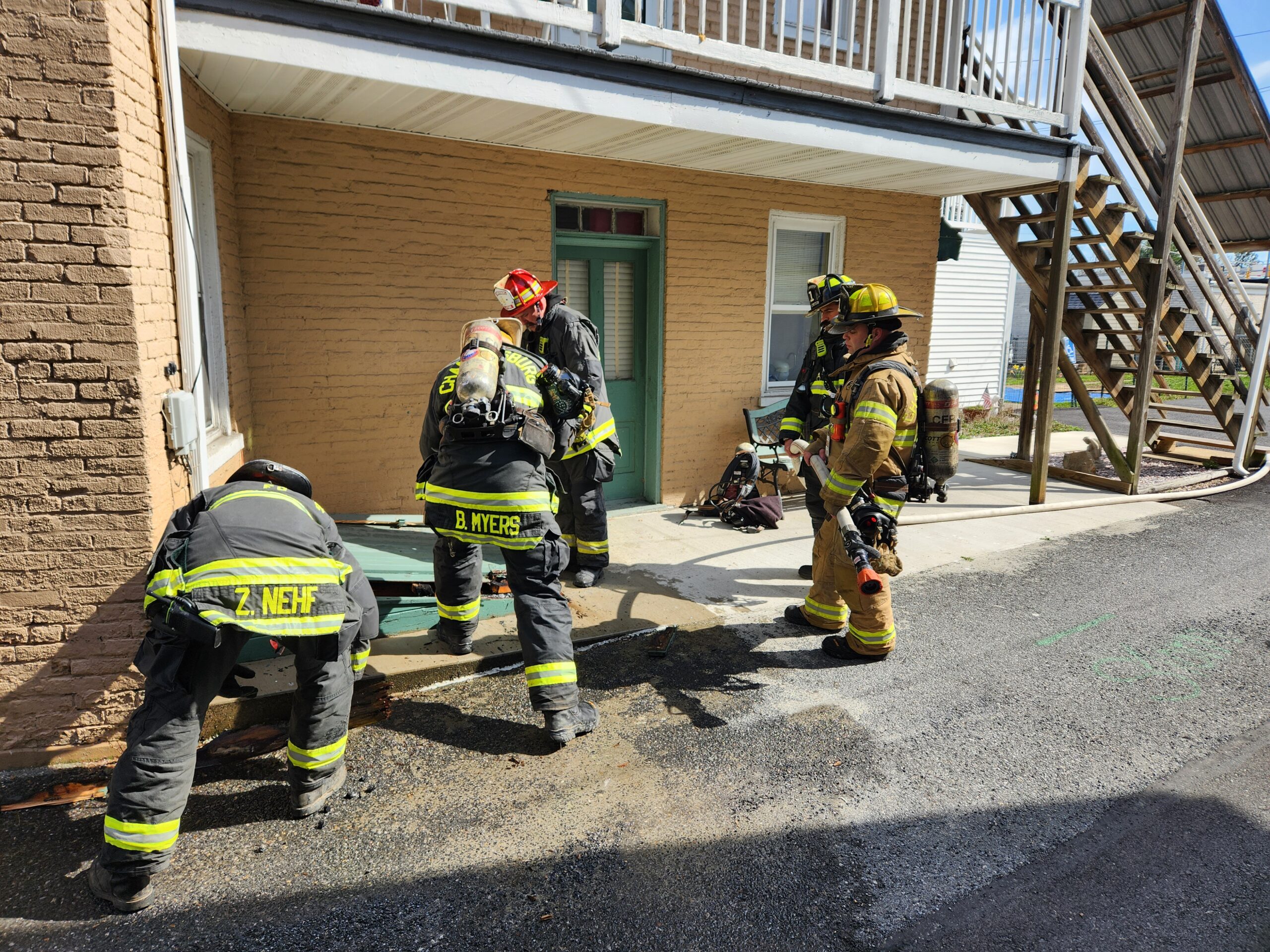 CFD units and mutual aid were alerted just before 1500 hrs to 382 Lincoln Way East for a reported smoke from a house. While units were still being dispatched Chief 1 arrived, find a small fire on a back porch. Engine 1-1 arrived and crews deployed a crosslay to begin extinguishing the small fire. Command 1 staged all incoming units as crews investigated. All fire was contained to the exterior bilco doors to the apartment building and no extension into the building itself. CFD crews operated for a little over 30 minutes until placed in service by Command 1 (Chief Ulrich).