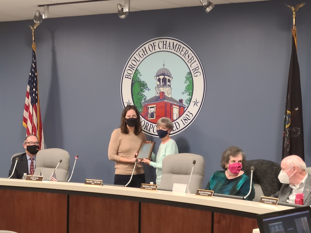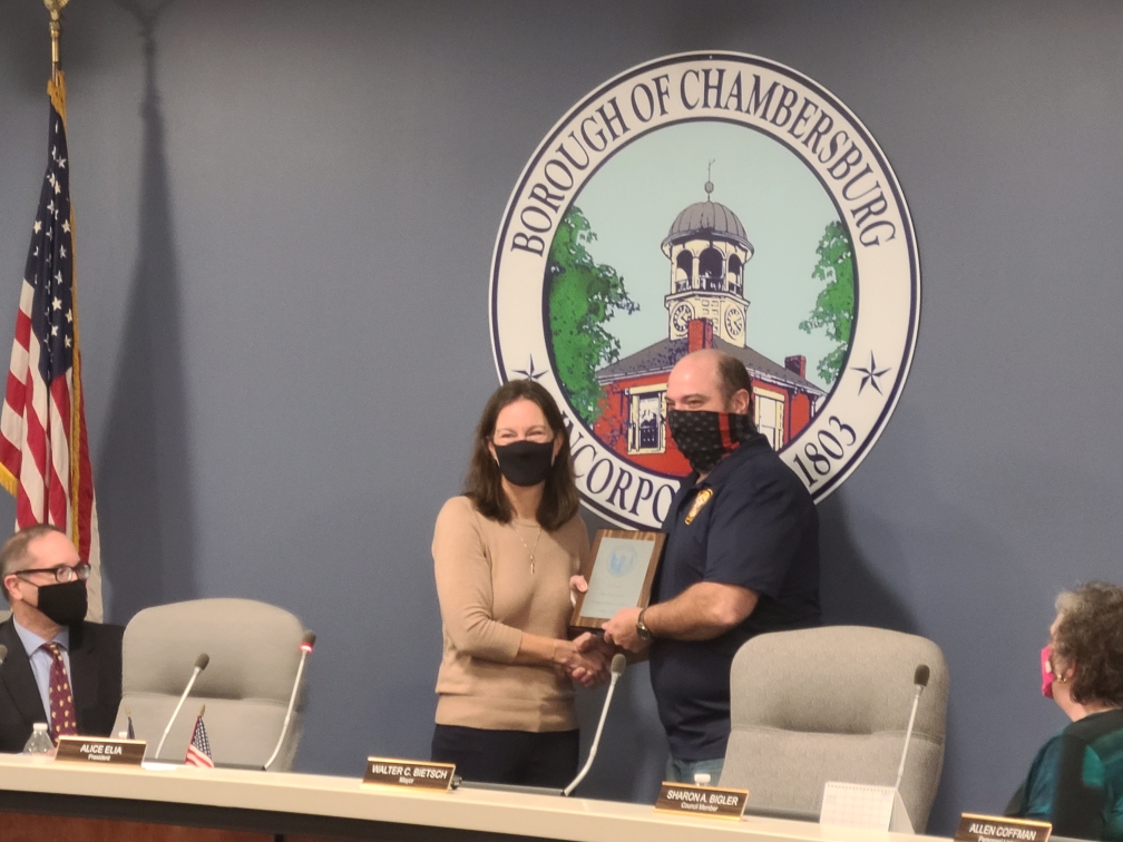 At the Borough Council meeting Council recognized recent retirees from 2020 and 2021. Among those recognized at the meeting were several from Chambersburg Fire Department that retired through 2021. Recognized at the meeting were Office Manager Dorris Mayer, FF/EMT Nick Miller, FF/EMT Kelly Knepper and FF/EMT Ed Royer.