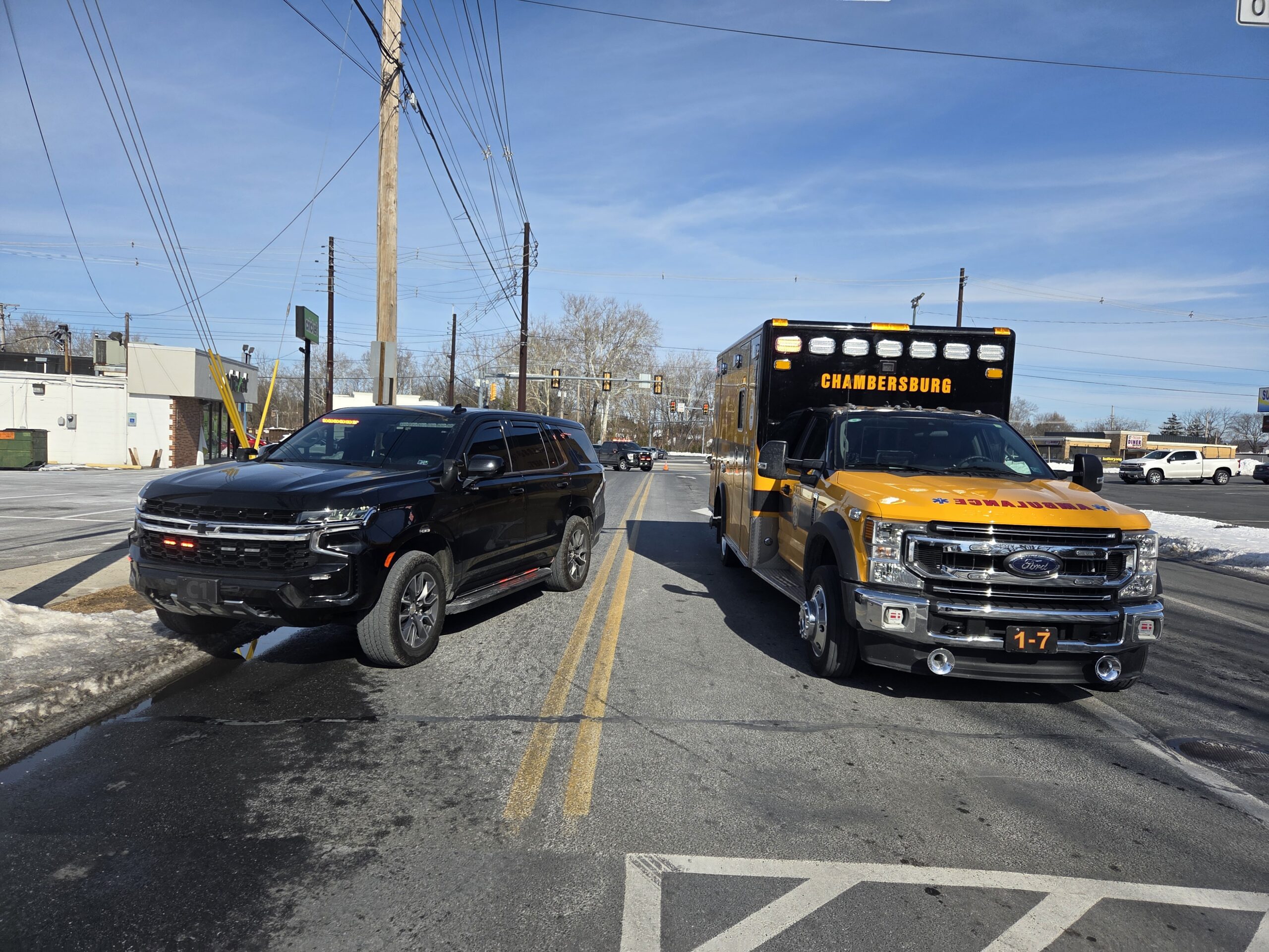 Engine 1-1 and Ambulance 1-7 were sent to the intersection of Stouffer Avenue and Lincoln Way East for a two-vehicle accident. Chief 1 arrived, locating the vehicles on Stouffer Avenue, blocking traffic. Ambulance 1-7 assessed the occupants and requested an additional EMS unit. Crews operated on the scene until the arrival of CPD and assisted with clearing the roadway. Once the roadway was cleared, the remaining CFD units cleared the scene. Crews were assisted on scene by Wellspan EMS.