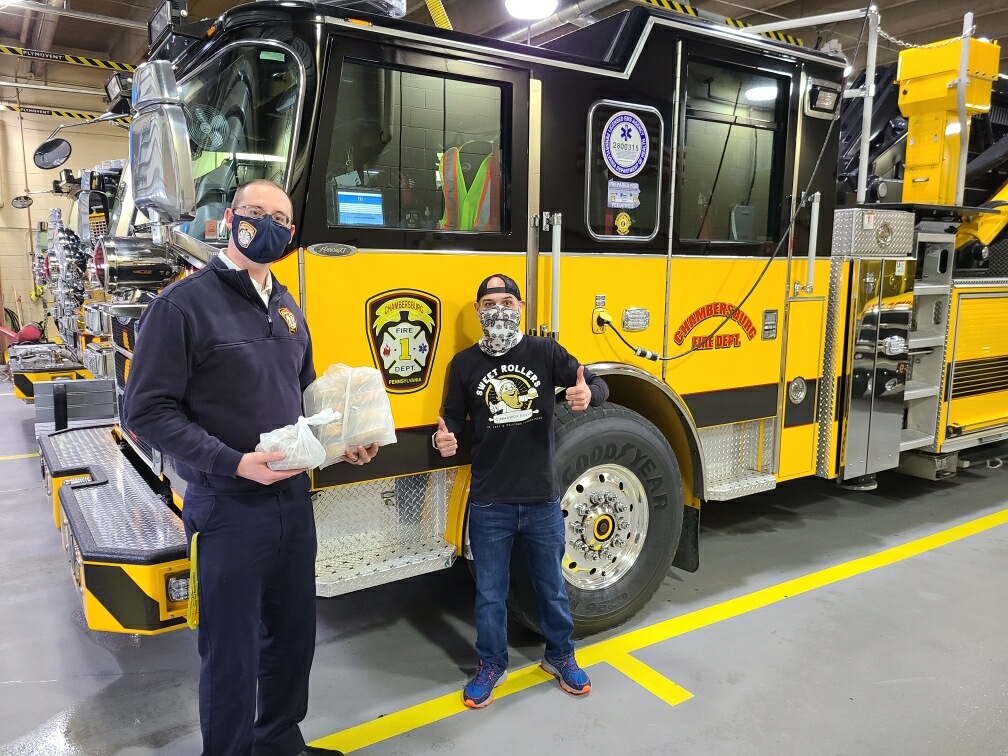 Chambersburg Firefighters received a generous donation this afternoon. Rocco, owner of Sweet Rollers, dropped off some goodies for the on duty crews to enjoy after working through the snow today. We enjoy our local small businesses in Chambersburg and how they always like to give back into their community. Thank you for thinking of us and all the other groups that you visited today.