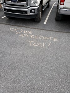 the men and women of CFD are here to continuously serve our wonderful community, no matter what life throws at us. Recently, crews have noticed amazing messages in our firehouse parking lot as