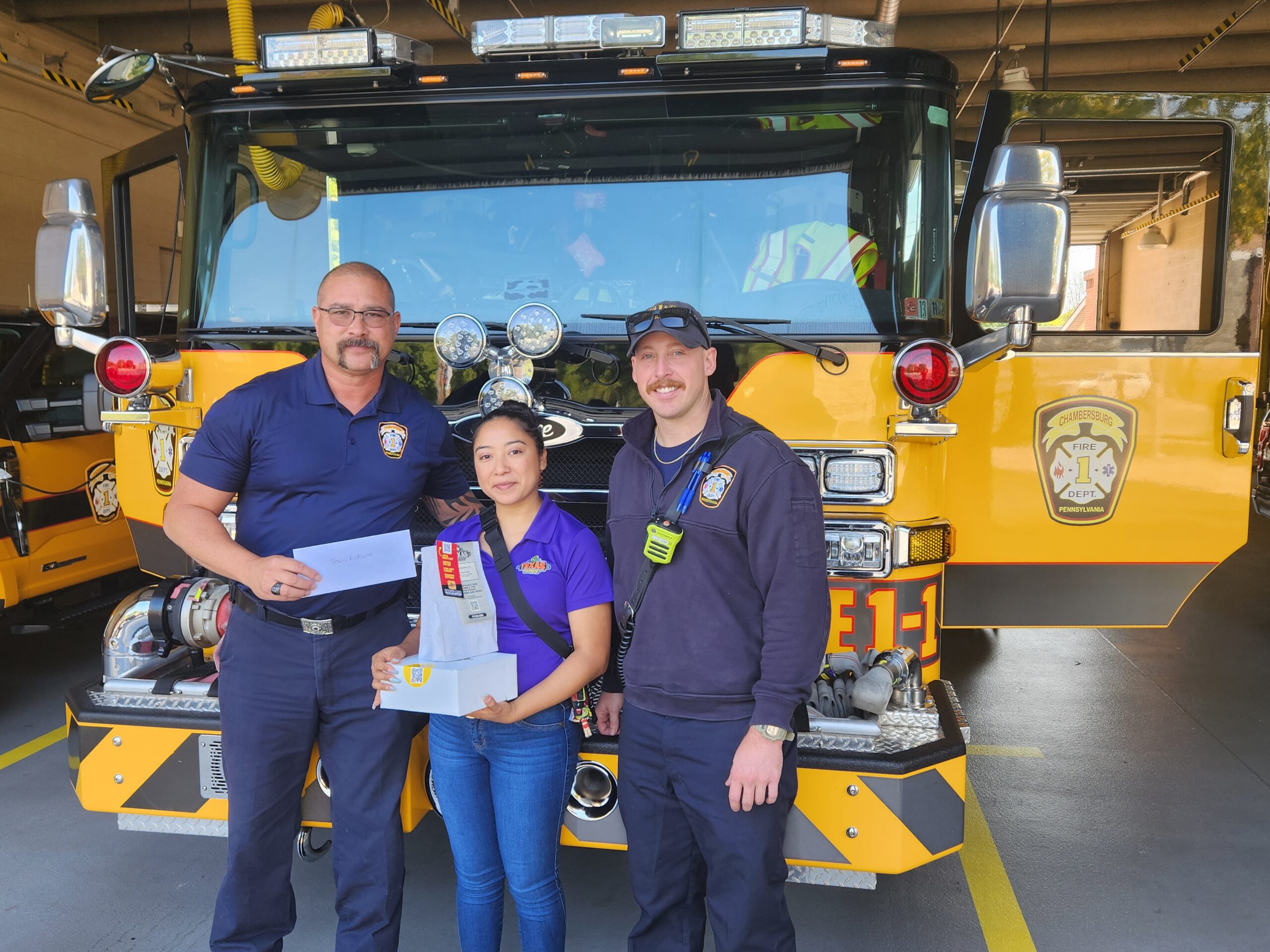 Chambersburg Fire Dept would like to thank the staff of Texas Roadhouse for stopping by today and dropping off some delicious food to the crews working today as part of their thank you emergency responders. We greatly appreciate our community for always thinking of us. We truly are thankful.