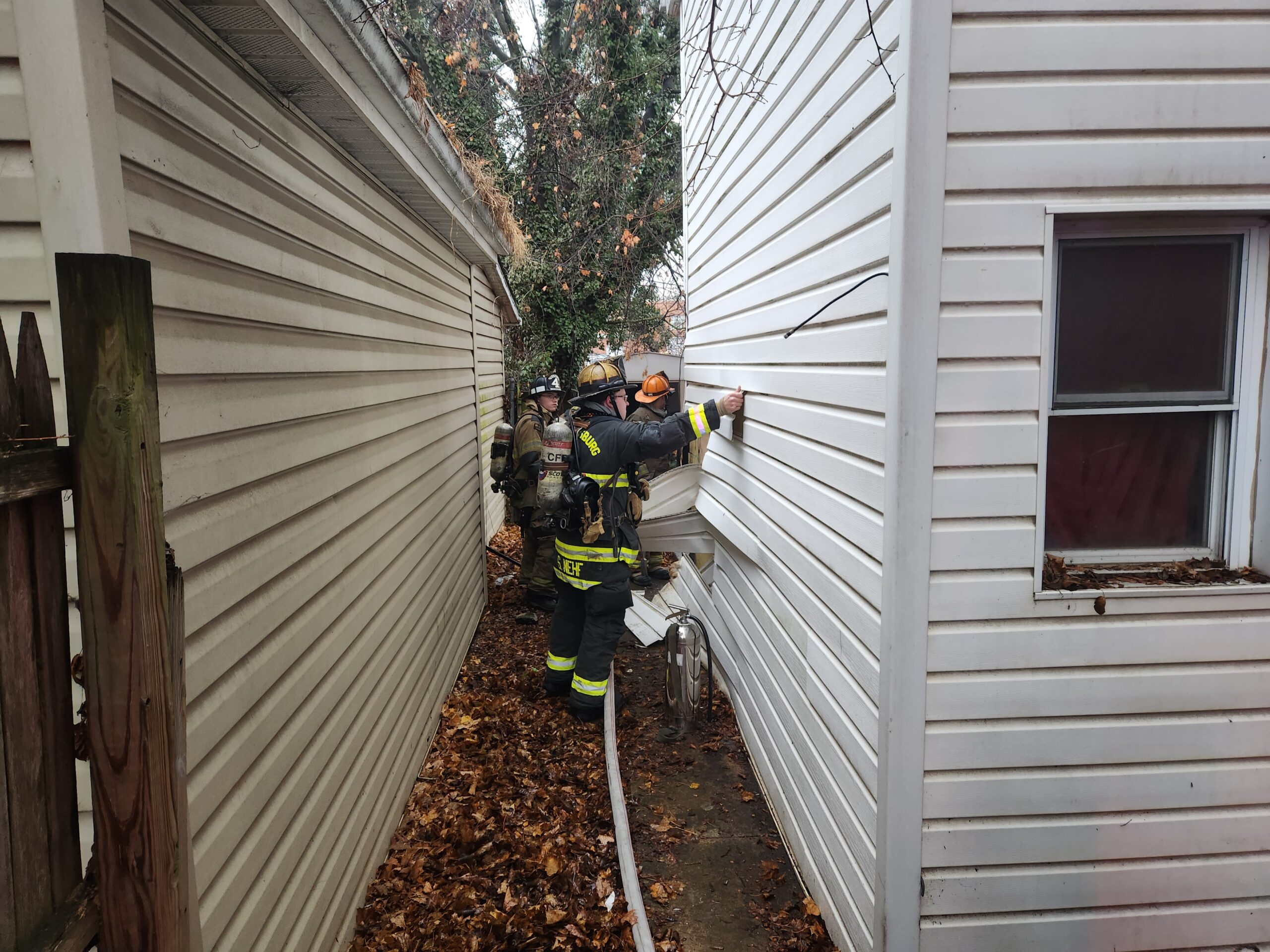 CFD units and mutual aid were sent to the 100 block of S. Third St for a reported house fire. En route, Communications advised calls reporting fire from the back of a house. Units arrived in the area, finding smoke but no visible fire. Chief 1 located a fire that had been extinguished prior to arrival. Crews from Company 1 and Station 4 checked the area and overhauled it to ensure no extension. No extension was found and after operating for a short period, Chief 1 placed all units in service.