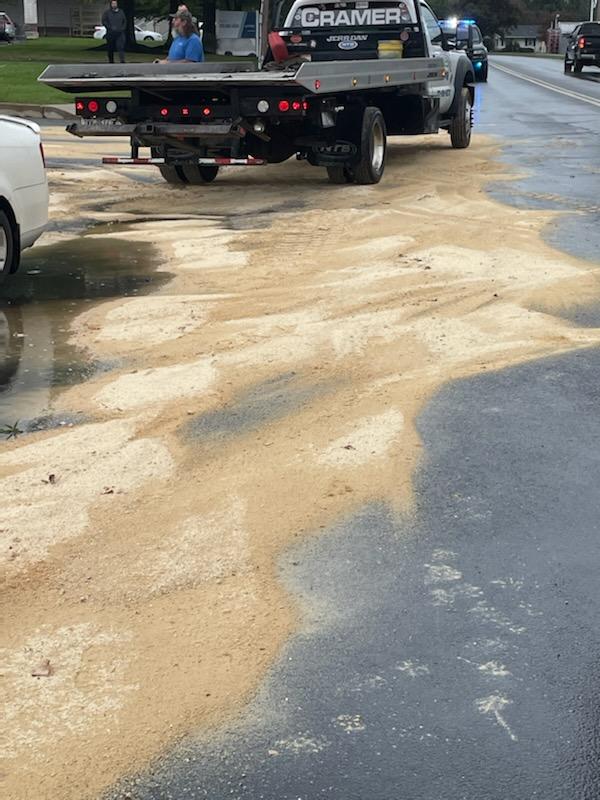 Engine 1-2 cleared from the inside gas call to respond to the 900 Block of Wayne Ave for a three vehicle accident. Engine 1-2 arrived, finding three autos at the entrance to Giant Food Store on Stouffer Ave. Engine 1-2 assessed all the occupants and applied absorbent from the vehicles leaking fluids. Due to the weather in the area and potential runoff, Borough road crews were requested to apply sand for additional absorbent. Engine 1-2 remained on scene for an hour assisting with clean up.