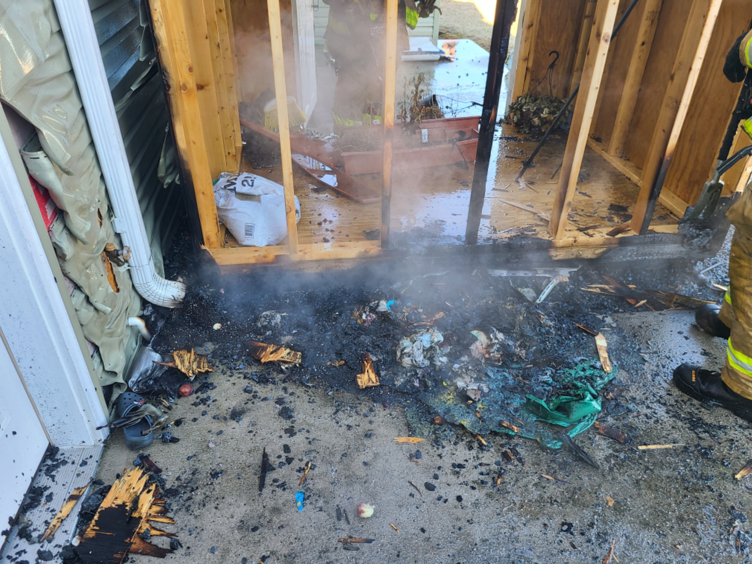 CFD units and mutual aid were sent to the 400 block of Lantern Ln for a reported Townhouse Fire. Enroute Franklin County 911 reported fire from the building. Duty 1 (Capt. Martin) arrived on scene with fire to the rear of the townhouse. Crews from Engine 1-4 and Engine 1-1 stretched a hoseline to the rear and extingiuished all visible fire. Crews check the shed and residenc for any extension and none were found. Crews operated for 30 minutes before returning to service.