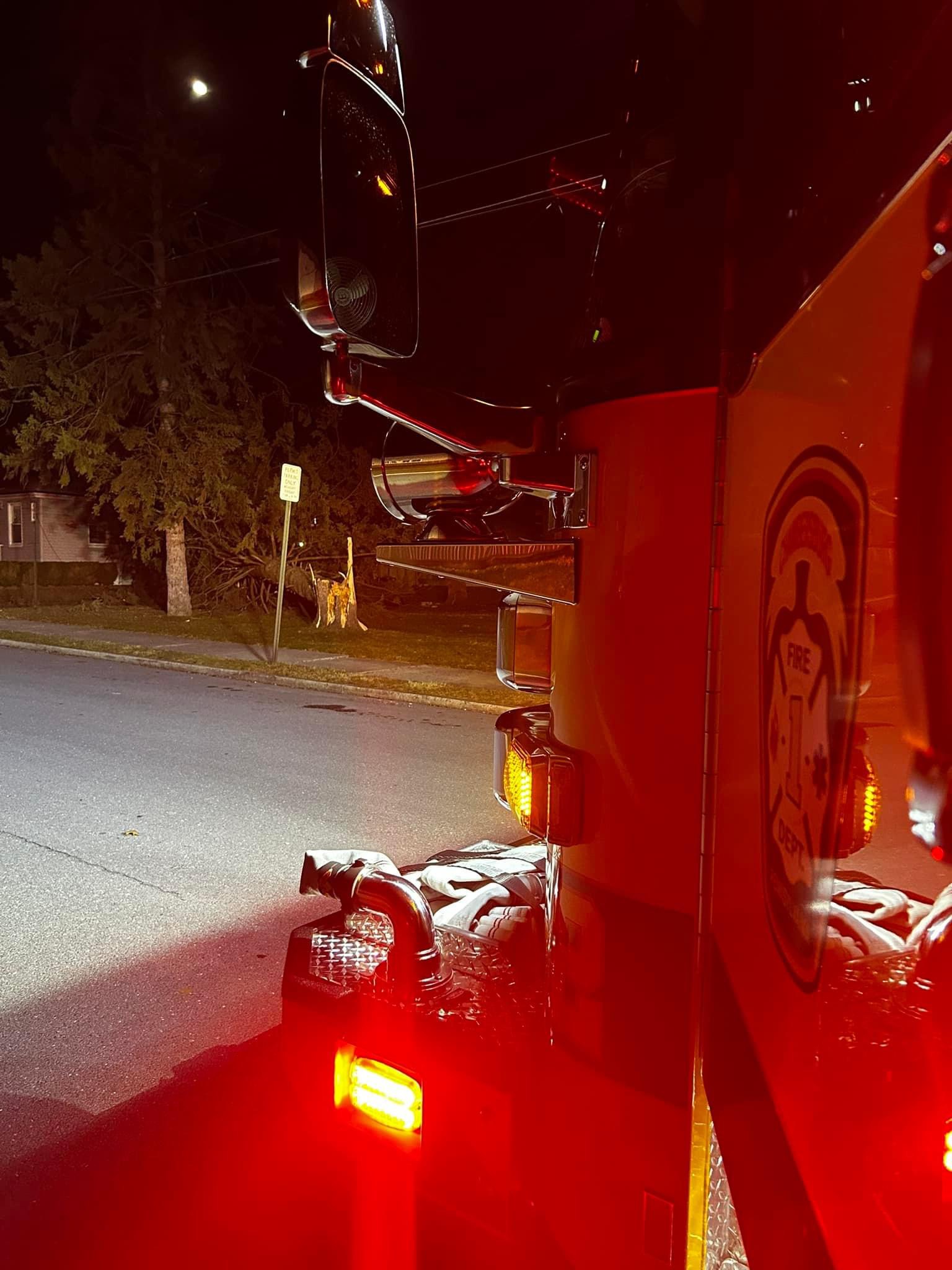 Engine 1-2 was sent to the 500 block of Lortz Ave for wires down. Engine 1-2 arrived in the area and found a large tree that uprooted itself and fell. A utility pole was located at Lortz and Stanley Ct with significant damage bringing wires down in the roadway. The crew from Engine 1-2 evaluated one home that was near the downed tree but no damage was found. The roadway was blocked off and Borough Electric requested to the scene before Engine 1-2 cleared the scene.