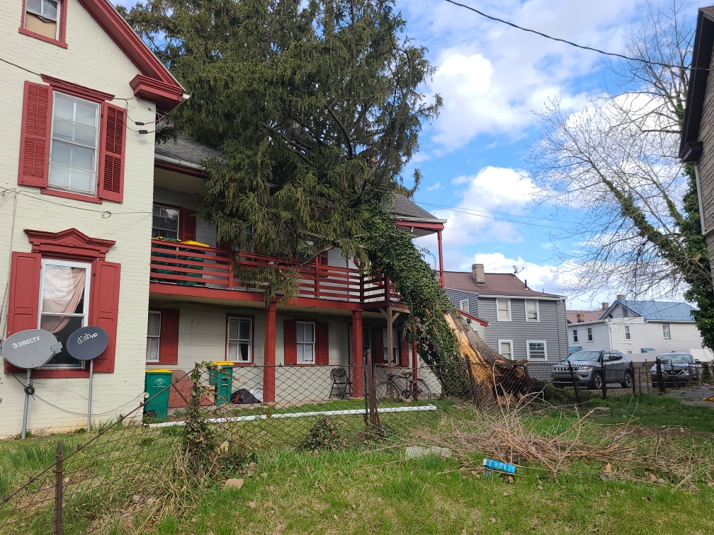 HQ Station received a phone call on station reporting a tree that had fallen into an apartment building. Engine 1-1 responded non-emergency to investigate, finding a large tree into the building with structural damage. Crews evacuated the building and created a safety zone around the damaged area. CFD was assisted on scene by Borough Electric Dept and PMCA (Borough Building Code Official). Engine 1-1 remained on scene for about an hour assisting on scene and working with residents to get belongings.