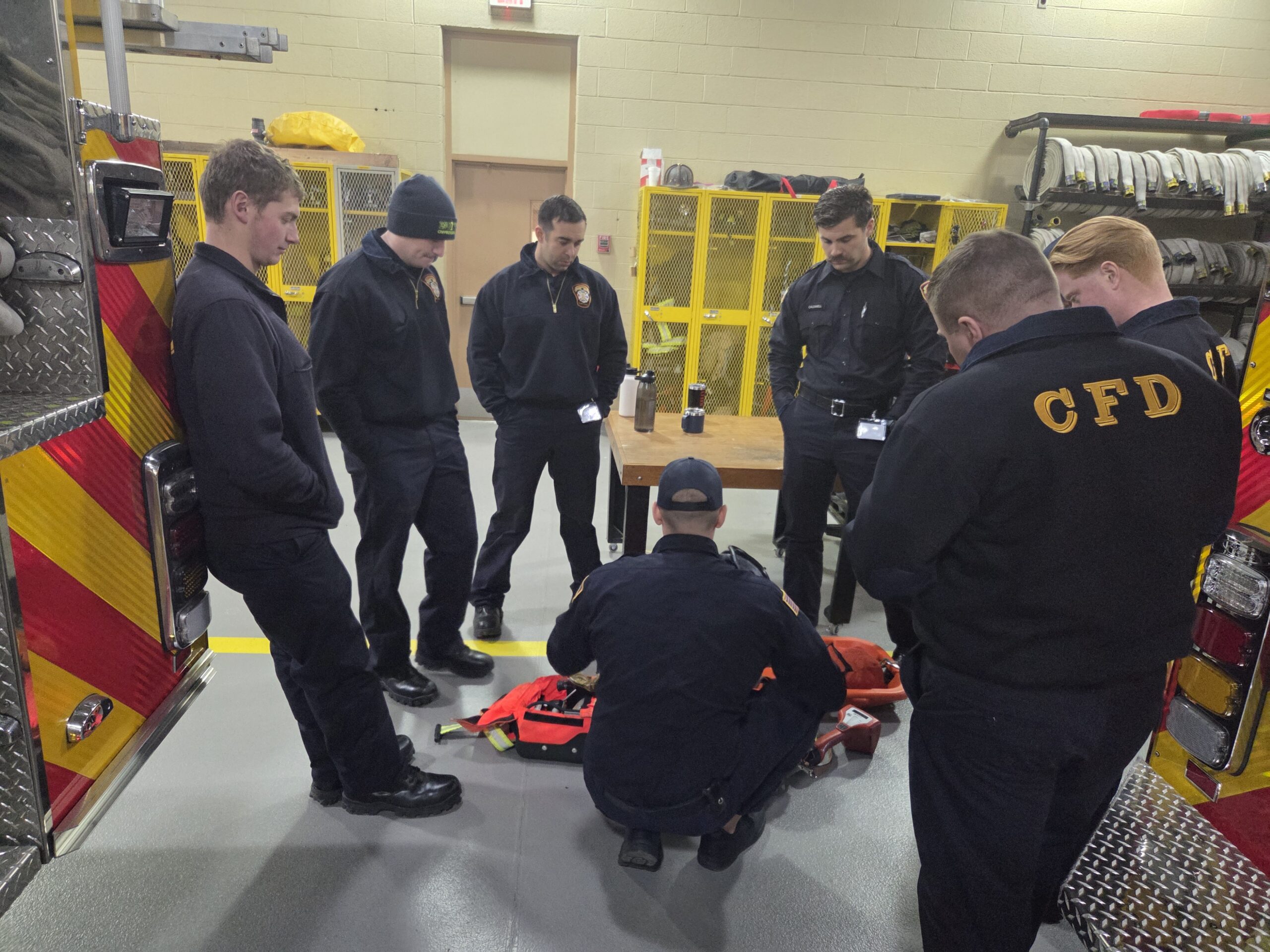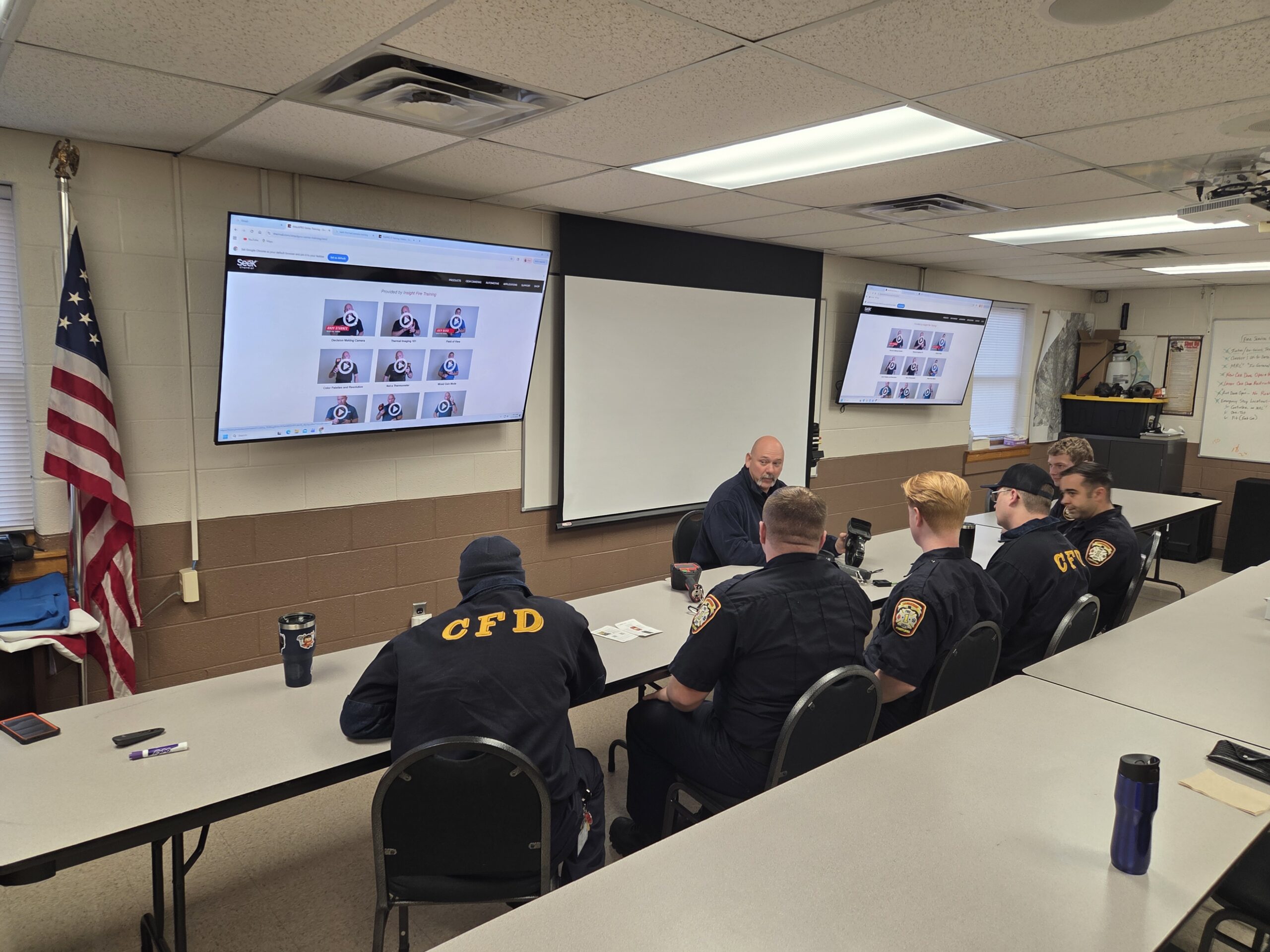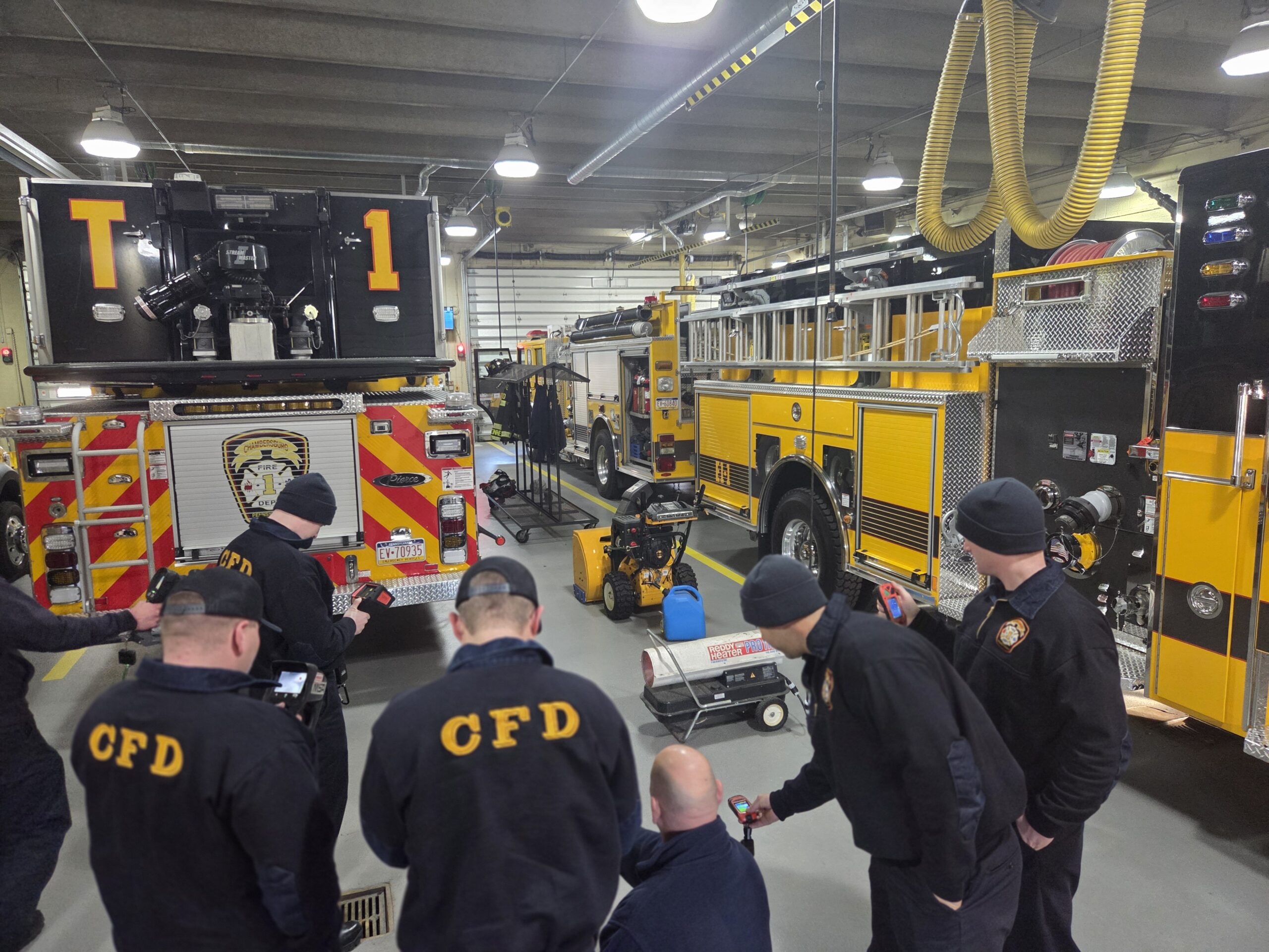 Tuesday was packed with several topics being covered. The new members reviewed the operations of the departments 5-gas meters, thermal imaging cameras, Knox Boxes, radios, SCBA, RIT Bags and our air cascade system. The day ended with a walk to the Franklin County 911 Center back-up Center for a tour and discussion of operations of the County radio system by Communications Coordinator, Barbie Harshman. Members assisting today were Asst. Chief Myers, Captains Chris Brown and Randall Pryor and Tower Operator Robert Barrett.