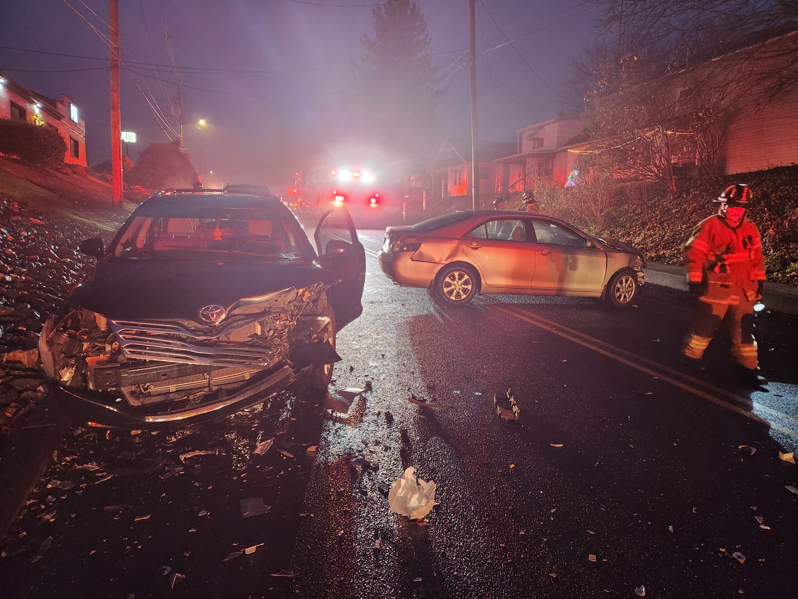 Just before 0700 hrs CFD units were sent to the 400 block of Norland Ave for a vehicle accident with confinement. Asst. Chief 1 arrived finding two autos blocking the roadway. Crews found all occupants out of the vehicles. Two occupants were transported to local hospitals by Wellspan EMS. Crews remained on scene clearing debris and assisting the Police Dept and towing. The Borough Street Dept also assisted on scene with a street sweeper before the roadway was opened up.