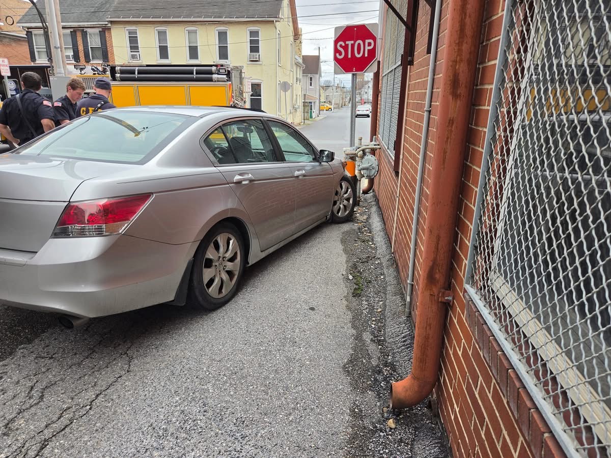 Engine 1-1 and Ambulance 1-9 responded to the 200 block of East Queen St. for a single-vehicle accident in that area. Units arrived in the area and located the vehicle on Harrison Ave. The vehicle struck a safety pole, protecting the gas meter in the alley. Crews assessed the occupants, as well as the building. NO additional services were needed and units cleared the scene.
