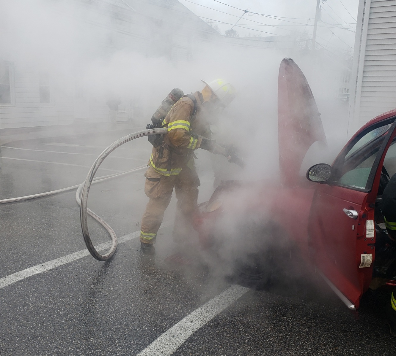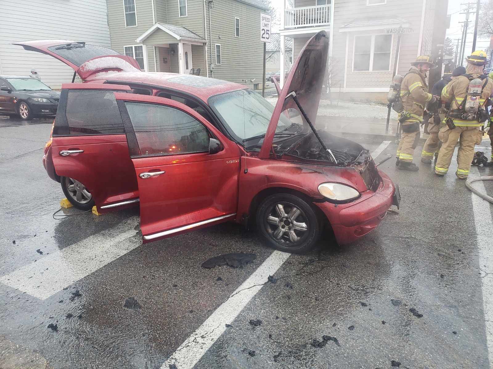 Shortly after clearing a fire alarm on Gateway Dr, CFD units were sent to the intersection of Fourth St and Washington St for a vehicle fire. Being a block away, Tower 1 added themselves to the call and arrived during dispatch to find one vehicle at the intersection with fire in the engine compartment. Engine 1-2 arrived next and the crew from Tower 1 advanced a crosslay to begin fire attack. Crews from Ambulance 1-7 and Engine 1-1 assisted. Crews remained on scene for a short time assisting CPD with the investigation.