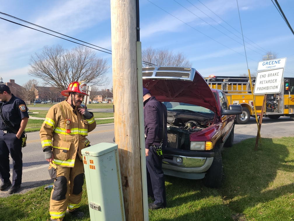 Engine 1-1 and Ambulance 1-8 were alerted to the area of 2055 Scotland Ave for a Vehicle Accident. Engine 1-1 arrived, finding one vehicle into a pole. Crews found the occupant out of the vehicle denying any EMS services. Crews assisted with securing the vehicle's hood and turned the scene over to CPD.